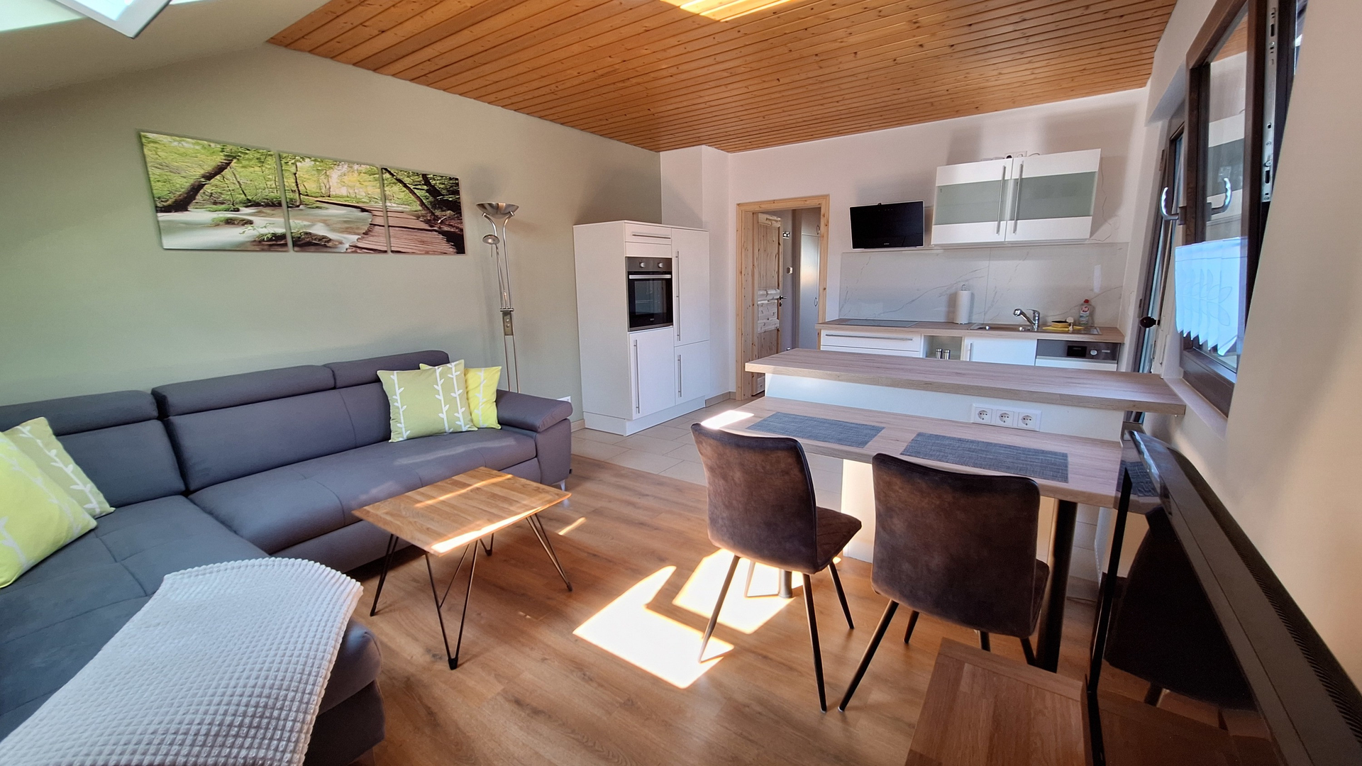 Die drei Ferienwohnungen bieten modernen Komfort und nachhaltige Ausstattung. Alle Ferienwohnungen verfügen über: