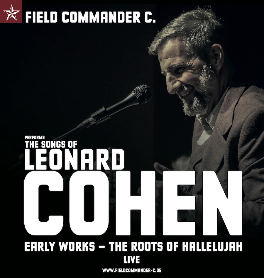 Field Commander C. ist eine eindrucksvolle Hommage an den großen, kanadischen Singer-Songwriter Leonard Cohen. Mit dem Programm „Early works - the roots of Hallelujah“ begibt sich Sänger Rolf Ableiter mit seiner Band in akustischer Besetzung auf musikalische Spurensuche und erklärt, wie ein Evergreen wie „Hallelujah“ überhaupt entstehen konnte. Dabei spielen bekannte Lieder wie „Suzanne“, „Bird on the Wire“, „So long Marianne“ oder gar Famous Blue Raincoat“ eine tragende Rolle, welche alle zu den berühmtesten Werken Cohens gehören – und alle in der Schaffenszeit seiner ersten vier Alben entstanden sind. Field Commander C. steht für ein Abend voller Melancholie, Poesie, virtuoser Spielfreude und Geschichten rund um Leonard Cohen und sein Frühwerk, welches liebevoll mit Gitarre, Violine, Cello, Orgel, Akkordeon und Gesang interpretiert wird.