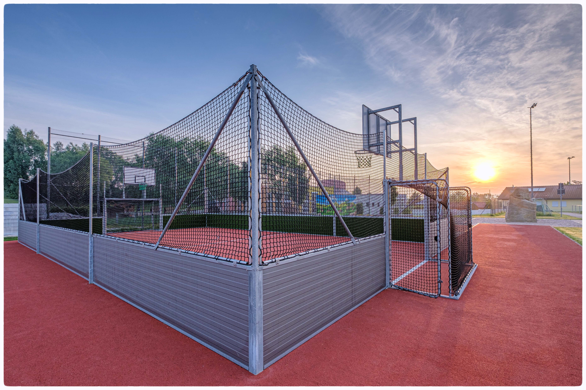 Auf der Slackline kann das Gleichgewicht trainiert werden und es gibt ein Spielfeld für Jung und Alt, das auch den Leichtathletikdisziplinen Laufen, Springen und Werfen Raum bietet.