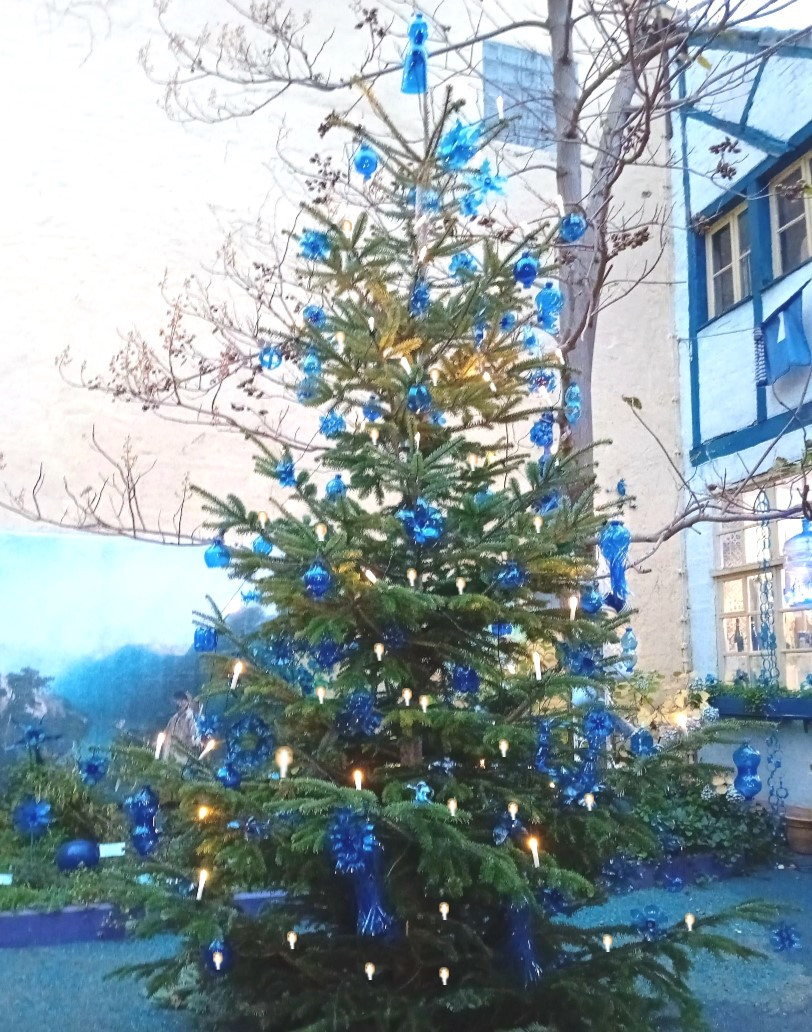 Wie jedes Jahr im Advent präsentiert das Museum Blau seinen Flohmarkt mit ausschließlich blauen Dingen. Ein großer Weihnachtsbaum erstrahlt und ist geschmückt mit Kugeln und Sternen der upcycling-art von Axel Eiflinger. Der Schmuck ist ebenfalls käuflich zu erwerben wie auch Bilder in Blau und andere originelle Geschenke. Als Gast bietet die Heidelberger Schmuckkünstlerin ihren Schmuck aus blauem Lapislazuli an. Das Erdgeschoss des Museums ist kostenlos zugängig.
