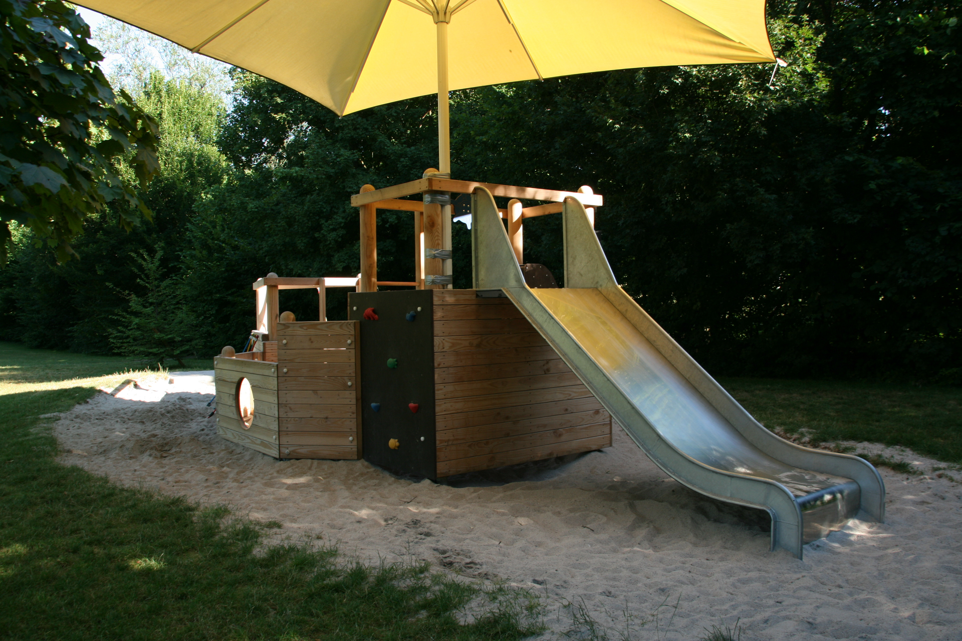 Die großzügigen Liegewiesen mit altem Baumbestand und das Volleyballfeld sorgen für zusätzliche Entspannung und Spaß.