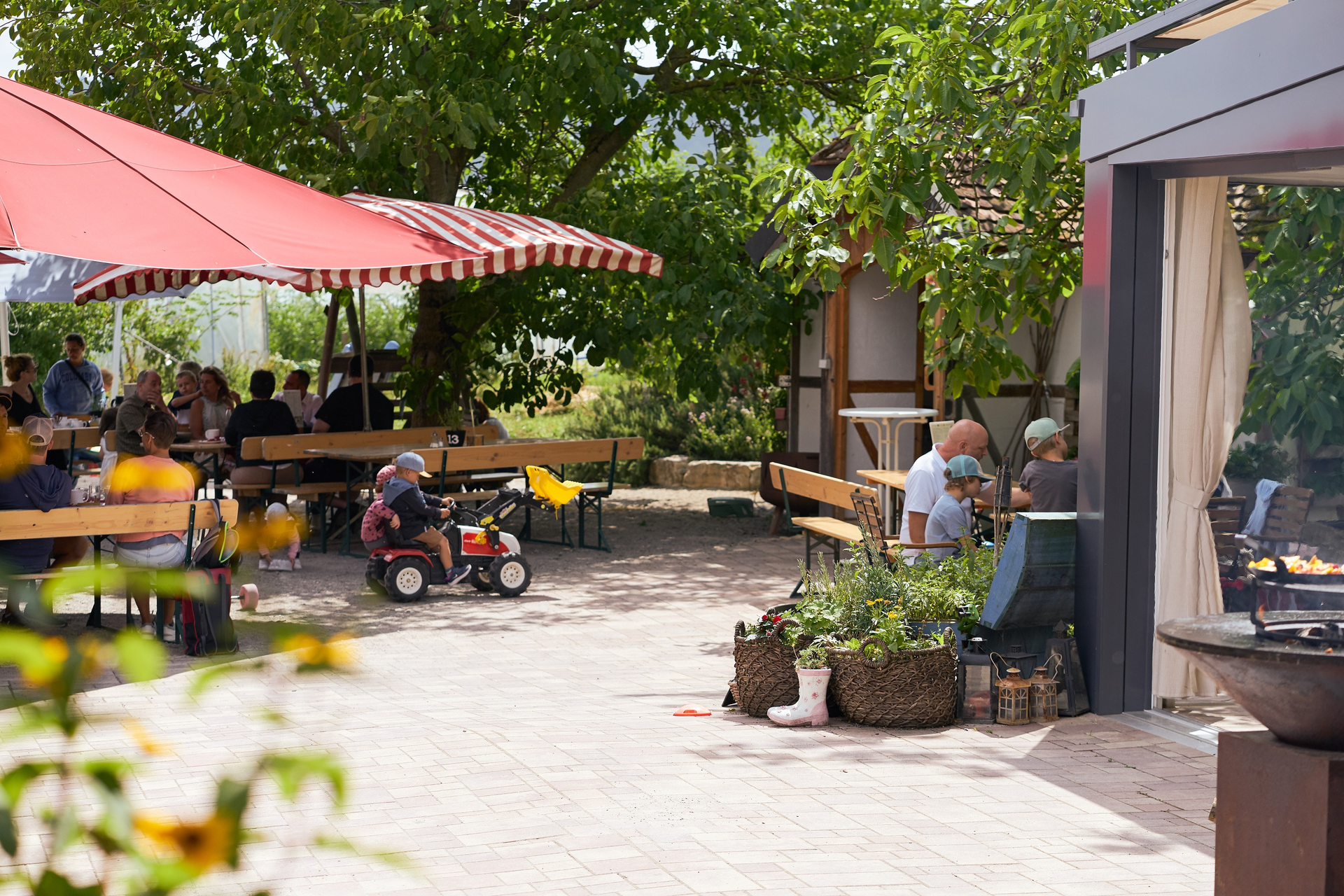 Im angeschlossenen Hofcafé lädt Ruth-Li, die Inhaberin, dazu ein, die hofeigenen Produkte direkt zu verkosten. Von abwechslungsreichen Frühstückskreationen über traditionelle Kuchen bis hin zu warmen Mahlzeiten und ein bodenständiges Vesper - hier wird mit Liebe gekocht. Das Hofcafé besticht mit seiner Natürlichkeit und der Liebe zum Detail. Diese Werte ziehen sich wie ein roter Faden durch das gesamte Angebot des Cafés. So sind alle angebotenen Speisen und Getränke in ausgewählter Bio-Qualität und werden liebevoll vom Team zubereitet.