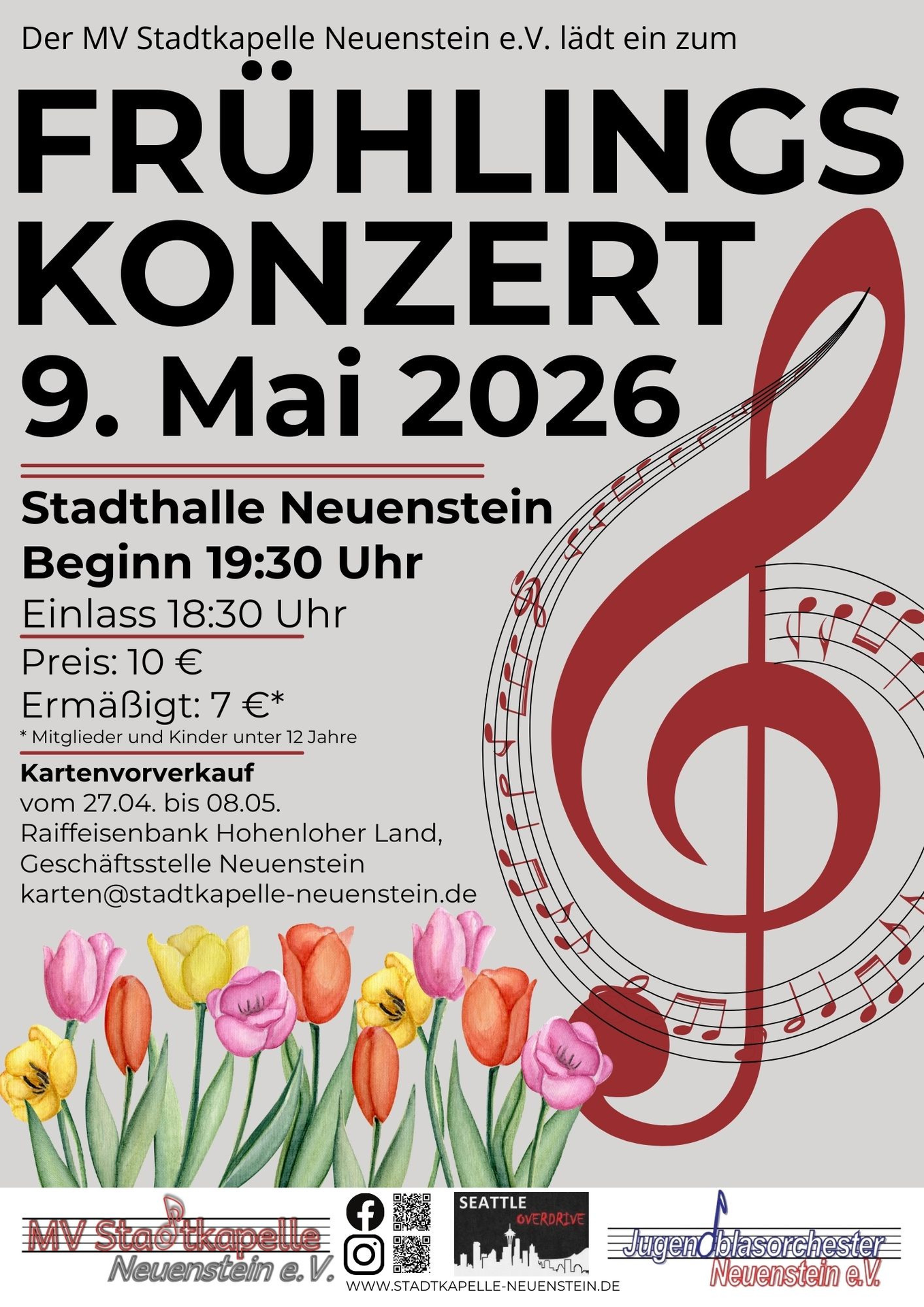 Frühlingsklänge erleben: Ein abwechslungsreicher Konzertabend mit der Stadtkapelle Neuenstein, dem Jugendblasorchester und Seattle Overdrive.