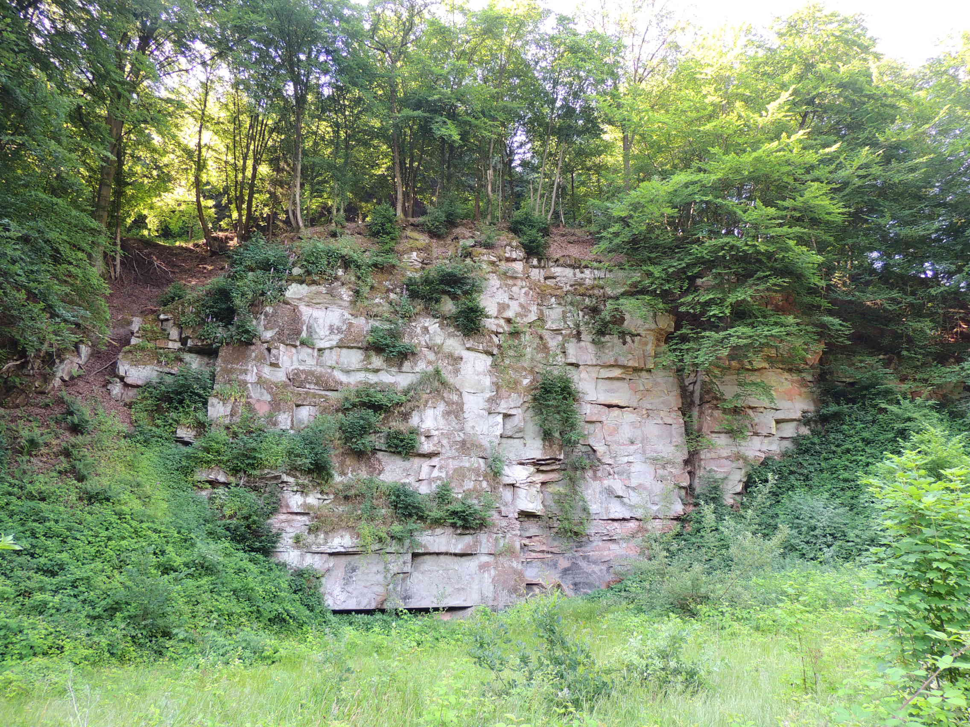 Der Exkursionsleiter nimmt die Teilnehmer mit auf eine Reise durch die Erdgeschichte und zeigt Ihnen die Entstehung des Buntsandsteins, seinen Aufbau und viele weitere Einzelheiten.