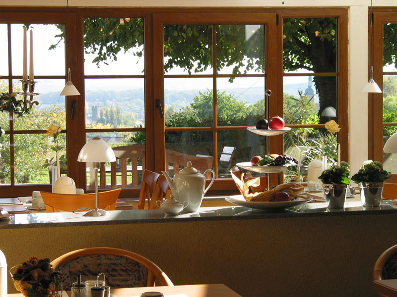 Das Gästehaus Kraft liegt umgeben von Weinbergen mit Blick auf das Neckartal am Ortsrand der Hölderlin- und Weinstadt Lauffen am Neckar. Lauffen mit seinem historischen „Städtle“ schmiegt sich malerisch in eine Neckarschleife. Umgeben von den bekannten Katzenbeißer-Steillagen einer der Top-Weinorte in der Region.