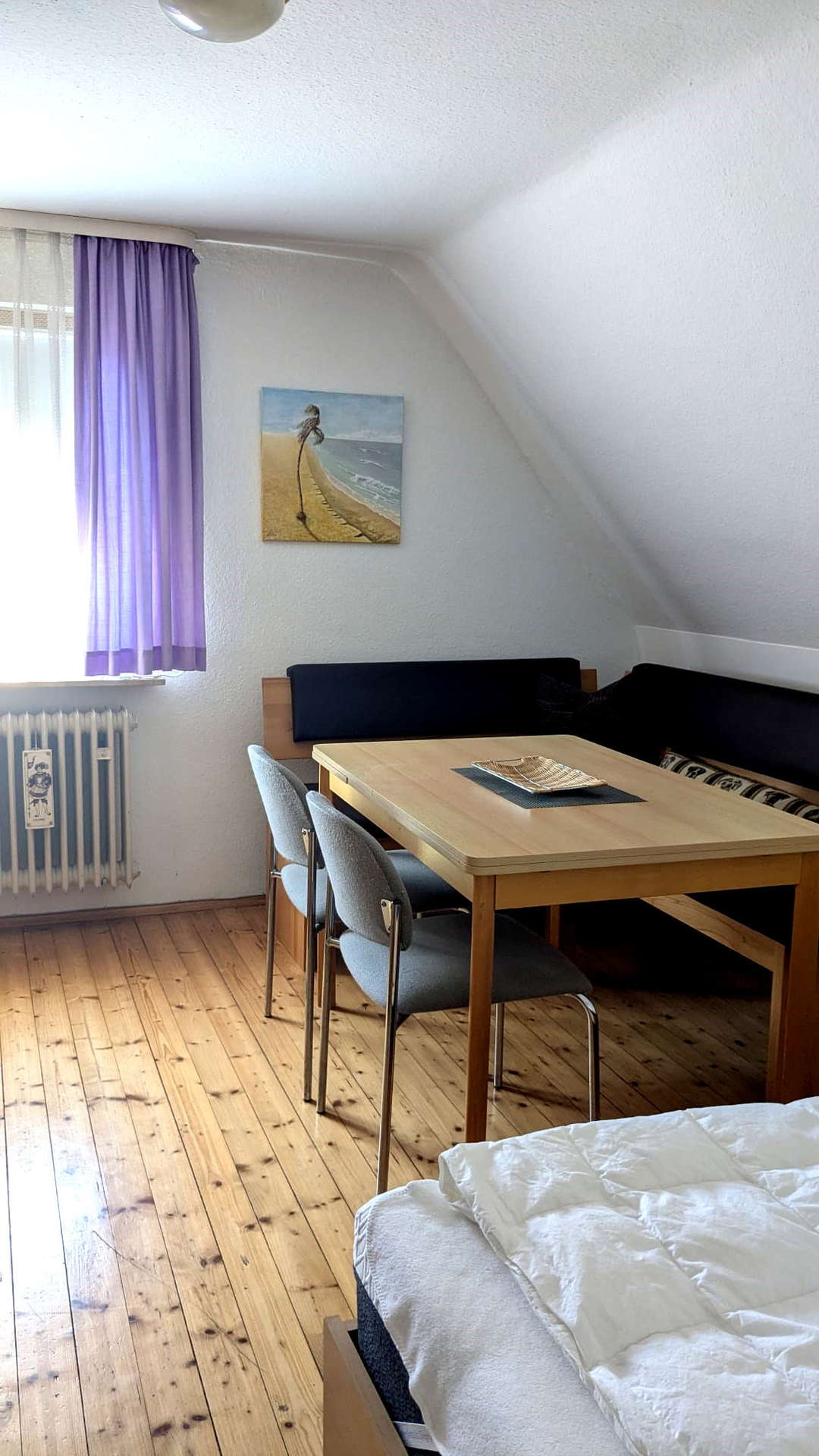 Ferienhaus in ruhiger Lage mit 2 mal 1 Zimmerapartment, oder 2 mal 2 Zimmer Apartment mit bis zu 3 Betten, eine gut ausgestattete Küchenzeile mit 2 Herdplatten, Kühlschrank, Kaffeemaschine und Mikrowelle, Bettwäsche und Handtücher werden bereitgestellt. Es ist ein Waschraum mit Waschmaschine und Trockner ist vorhanden.