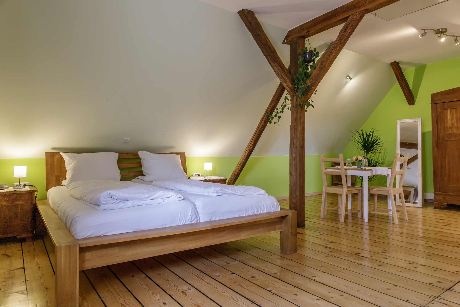 Die renovierten Zimmer sind alle mit über 100 Jahre alten Holzböden ausgestattet.