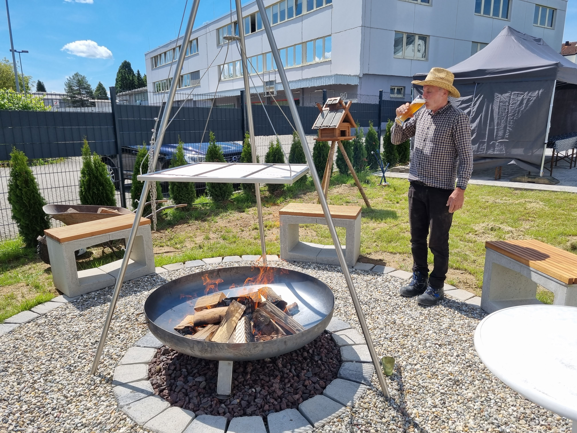 Eine großzügige Terrasse und eine Grillstelle im Garten laden zum Verweilen ein, und für die jüngeren Besucher gibt es einen kleinen Kinderspielplatz.