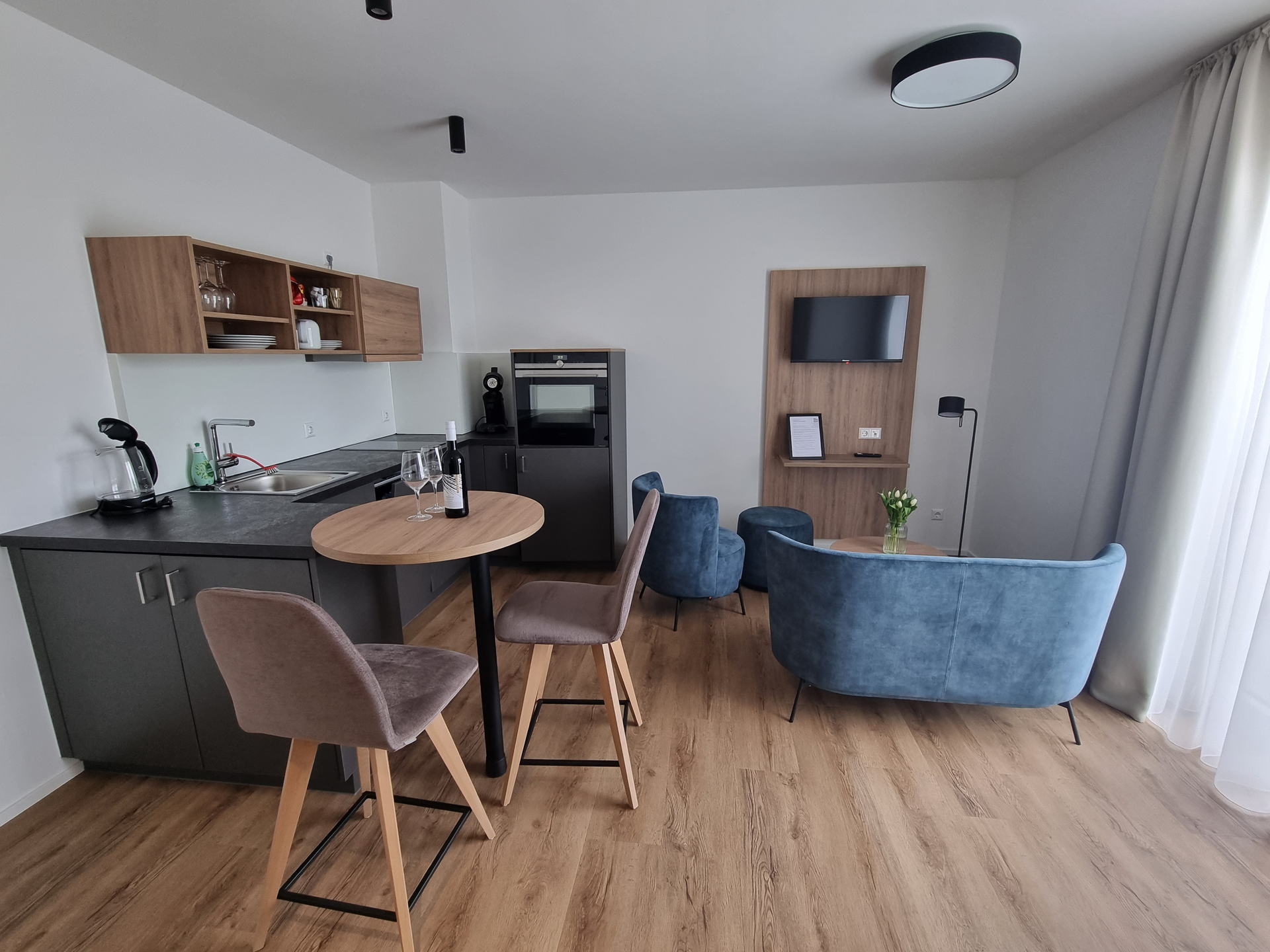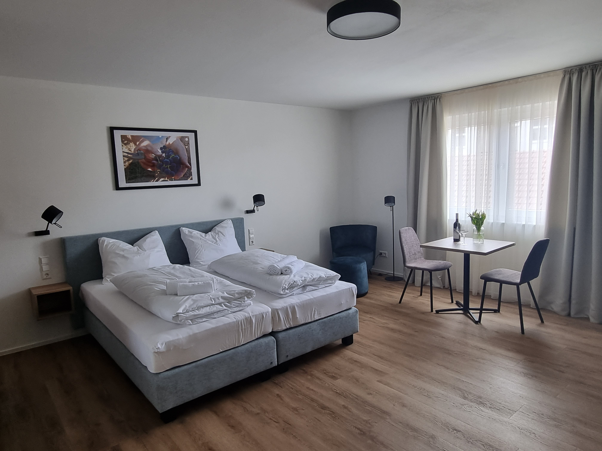 Die modern und liebevoll eingerichtete Unterkunft umfasst sieben Doppelzimmer (eins davon barrierefrei), zwei Einzelzimmer und drei Ferienwohnungen.