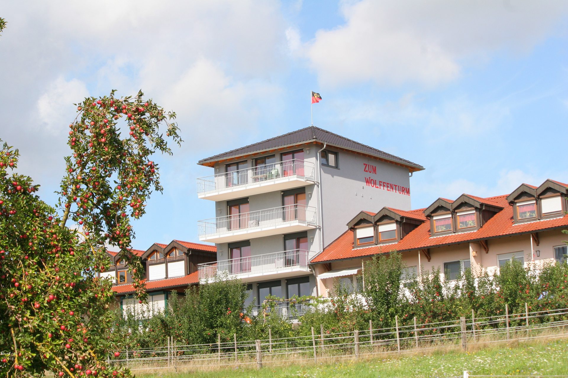 Auf dem Forellenhof, dem Herzstück ihres Obst- und Weinbaubetriebes, betreibt die Familie Wolff in einer modernen und familiären Atmosphäre das Gästehaus "Zum Wolffenturm".