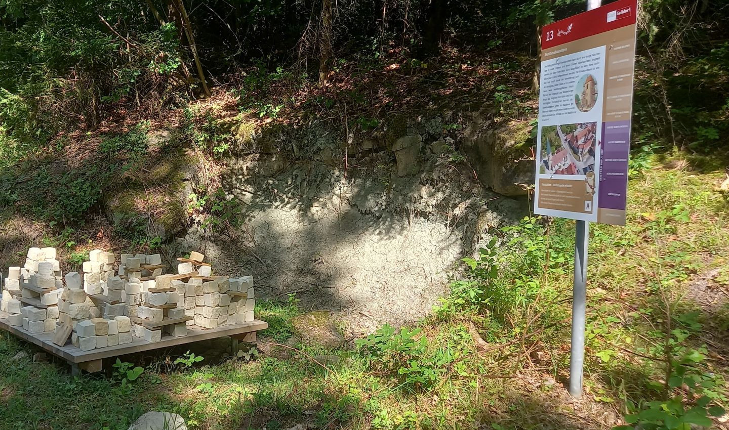 Infotafeln entlang des Geopfades vermitteln Wissenswertes über die Erdgeschichte Gaildorfs. Für den Spielspass sorgen interaktive Stationen: Dino-Wurfbude, Dino-Landschaft oder die Baustelle mitten im Wald laden zum Mitmachen und Ausprobieren ein.