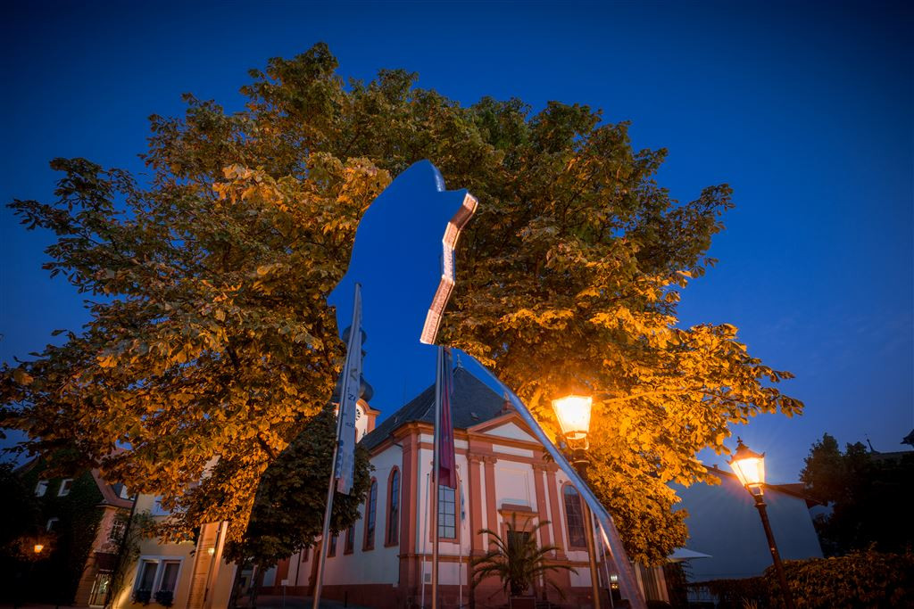 Der kunsthistorisch geführte Rundgang setzt Objekte und Skulpturen in den Fokus, die besonderen historischen Ereignissen zur Erinnerung oder Personen zum Gedenken gewidmet sind. Beginnend in der Hoch-Zeit Schwetzingens, dem 18. Jhdt., folgt ein Ausflug in die großherzogliche Ära. Ein weiterer Akzent der Führung liegt auf der dunklen Zeit des Nationalsozialismus. Der Rundgang endet auf dem Schlossplatz bei einer beeindruckenden Figurengruppe von Peter Lenk, die Kurfürst Carl Theodor auf einem "Glücksschwein" reitend darstellt.