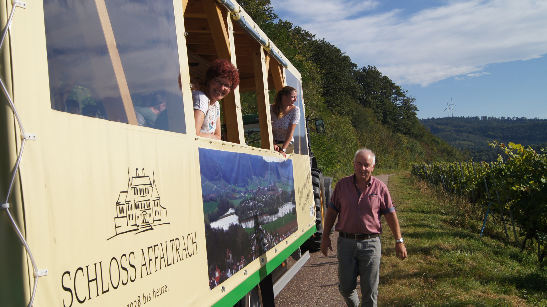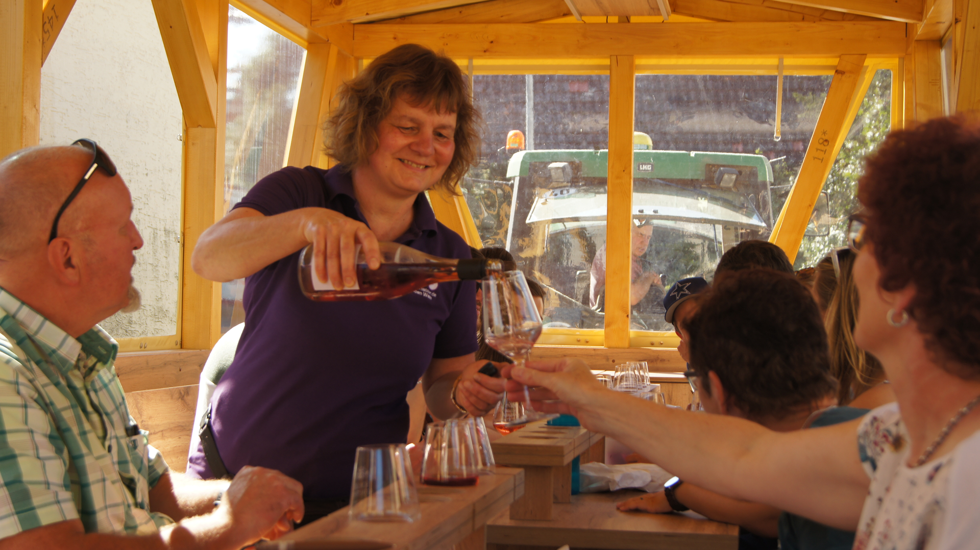 Während der Tour gibt es interessante Grundlagen der Arbeit vom Winzer und Landwirt, über die Rebsorten und die Region zu erfahren. Der Planwagen bietet 26 Sitzplätze.