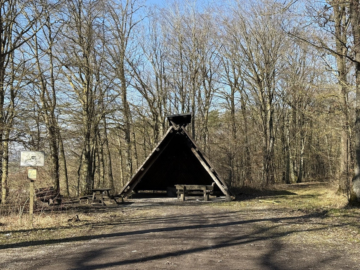 Überdachtung: Satteldachhütte, darin 3 Bänke für 15 Personen