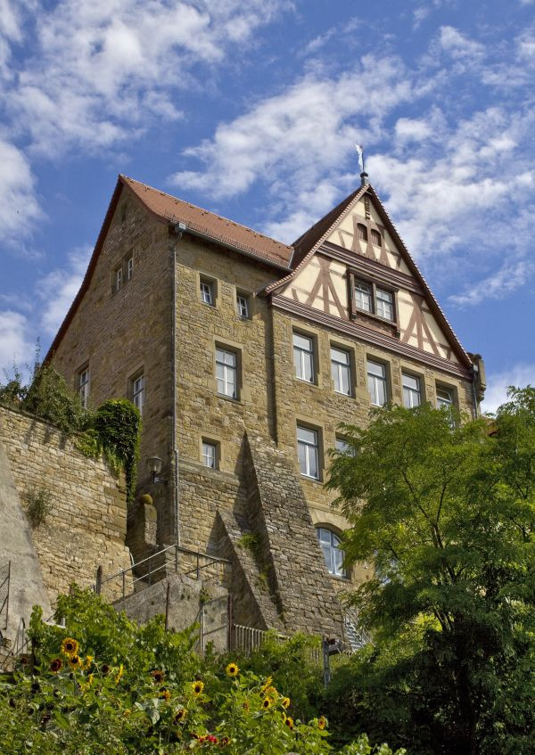 Die heutige Grundschule wurde 1905 im Jugendstil auf dem Platz der früheren Stadtkelter errichtet. Sie ist in der Originalsubstanz erhalten und zeigt neben der schönen Treppenhalle am Eingangsvordach den kleinen Apfeldieb und den strengen Lehrer mit den Zeichen seiner Macht: erhobener Zeigefinger, Notenbuch und Rohrstock.
