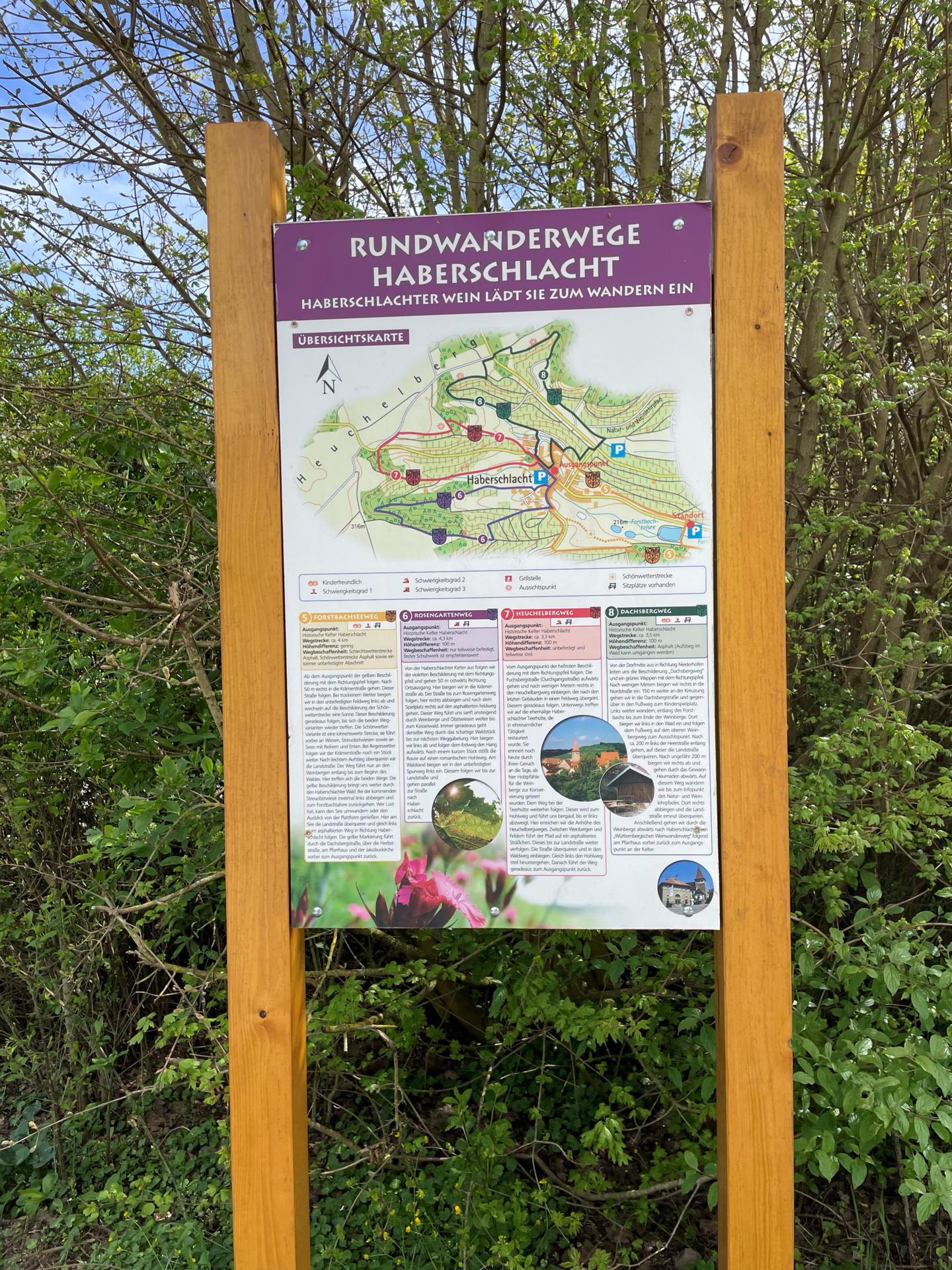 Rundwanderweg führt entlang verschiedener Weinreben und Seen sowie durch den Haberschlachter Wald, durch den bei Sonnenschein die Sonnenstrahlen blitzen. Entlang Streuobstwiesen und dem Forstbachsee, der zum Verweilen einlädt, vorbei am Haberschlachter Pfarrhaus und der Jakobuskirche gibt es einiges zu entdecken und zu erfahren.