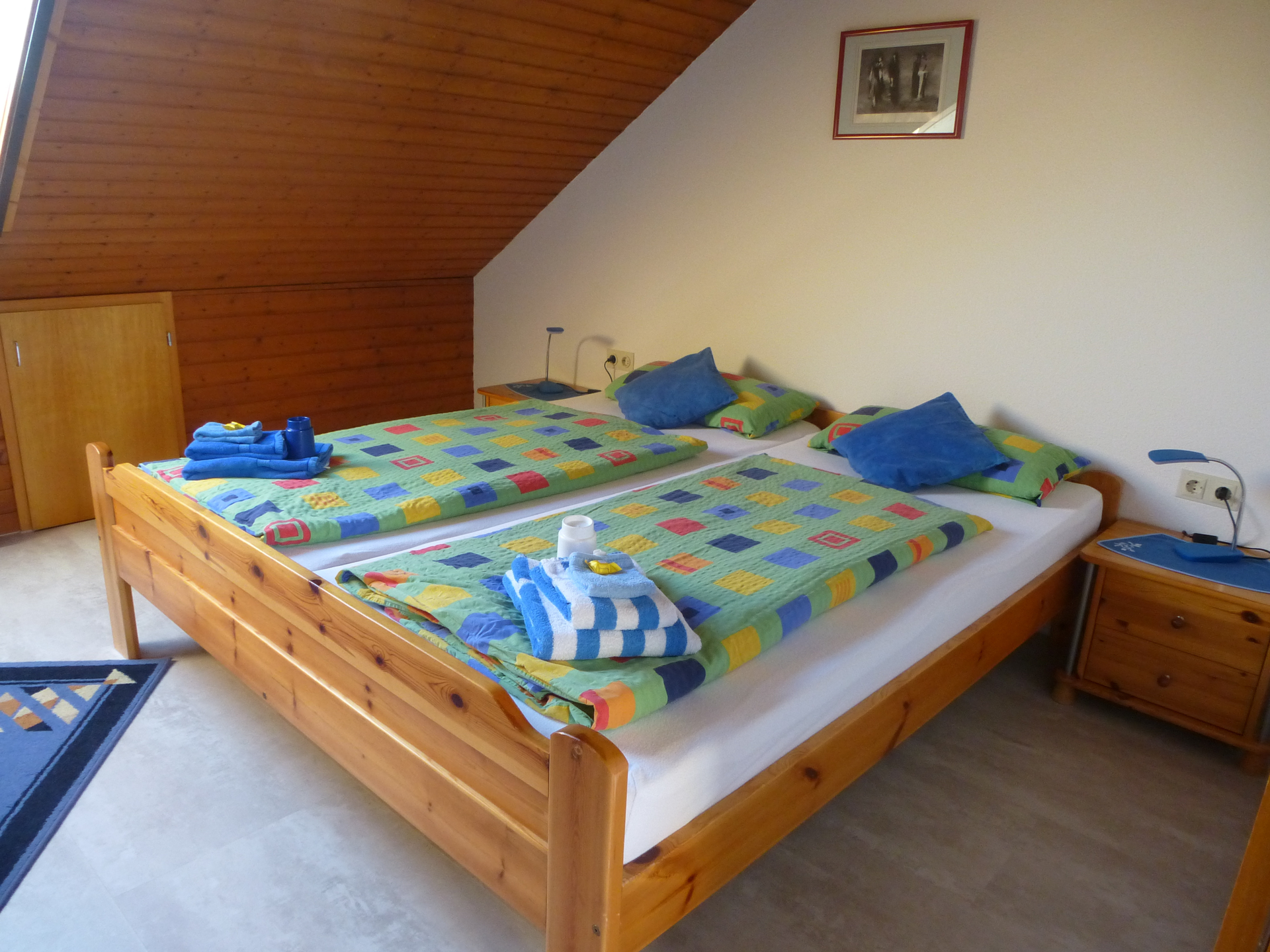 Das Haus Boesche bietet 1 Zimmer mit 3 Betten und 1 Zimmer mit Doppelbett, zusätzliches Matratzenlager möglich. Dusche und WC befinden sich auf der Etage.