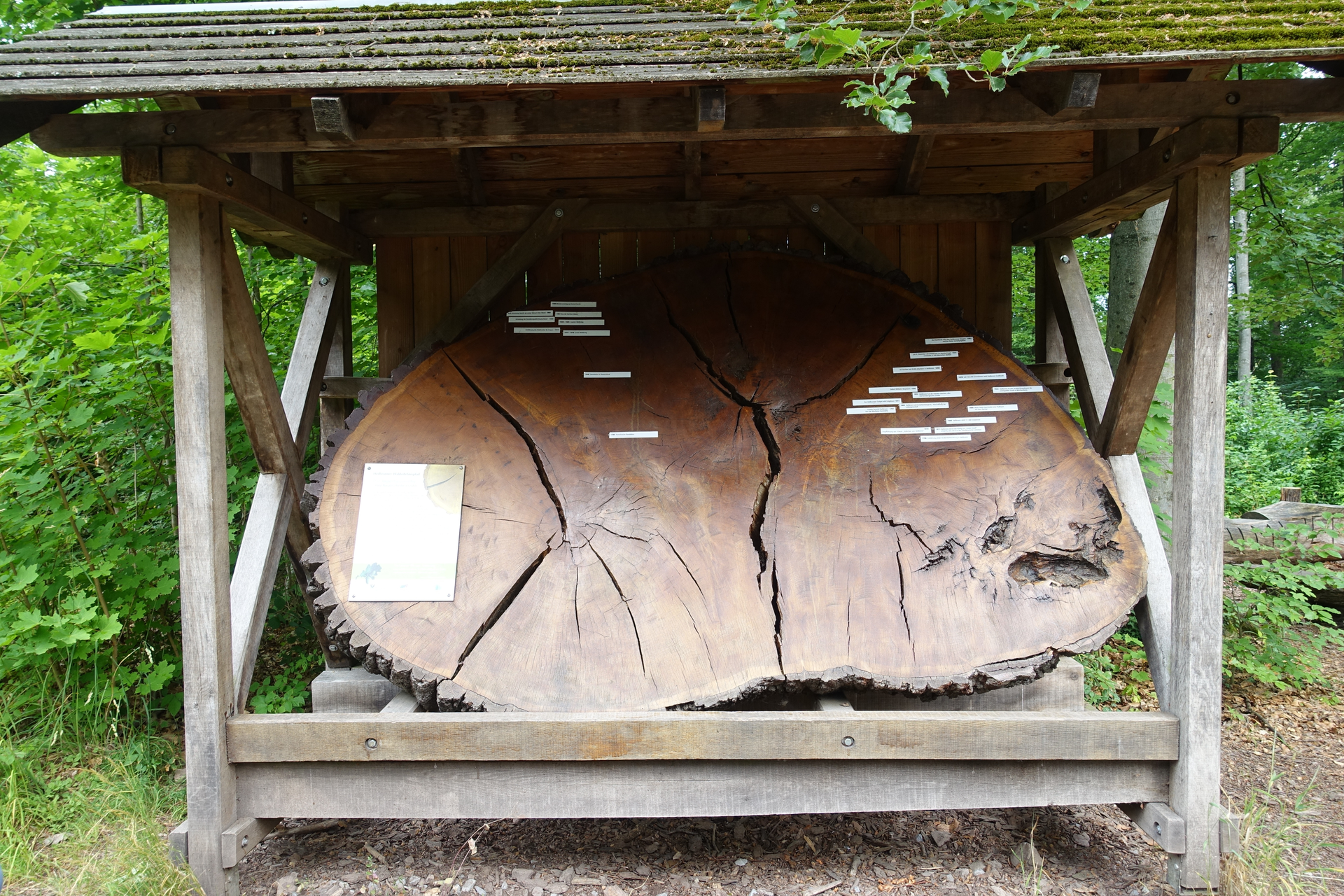 Am südlichen Ende des Parkplatzes am Jägerhaus ist der Start des Weges an einer Treppe mit einem großen Schild gekennzeichnet.