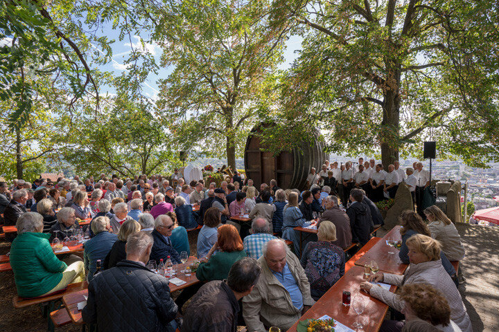 16 Uhr Begrüßungsreden mit dem Geschäftsführer der Genossenschaftskellerei Heilbronn Daniel Drautz, Oberbürgermeister Harry Mergel, dem Vizepräsidenten des Weinbauverbandes Württemberg Peter Albrecht, der Württembergischen Weinkönigin Kim Weißflog und dem Käthchen von Heilbronn