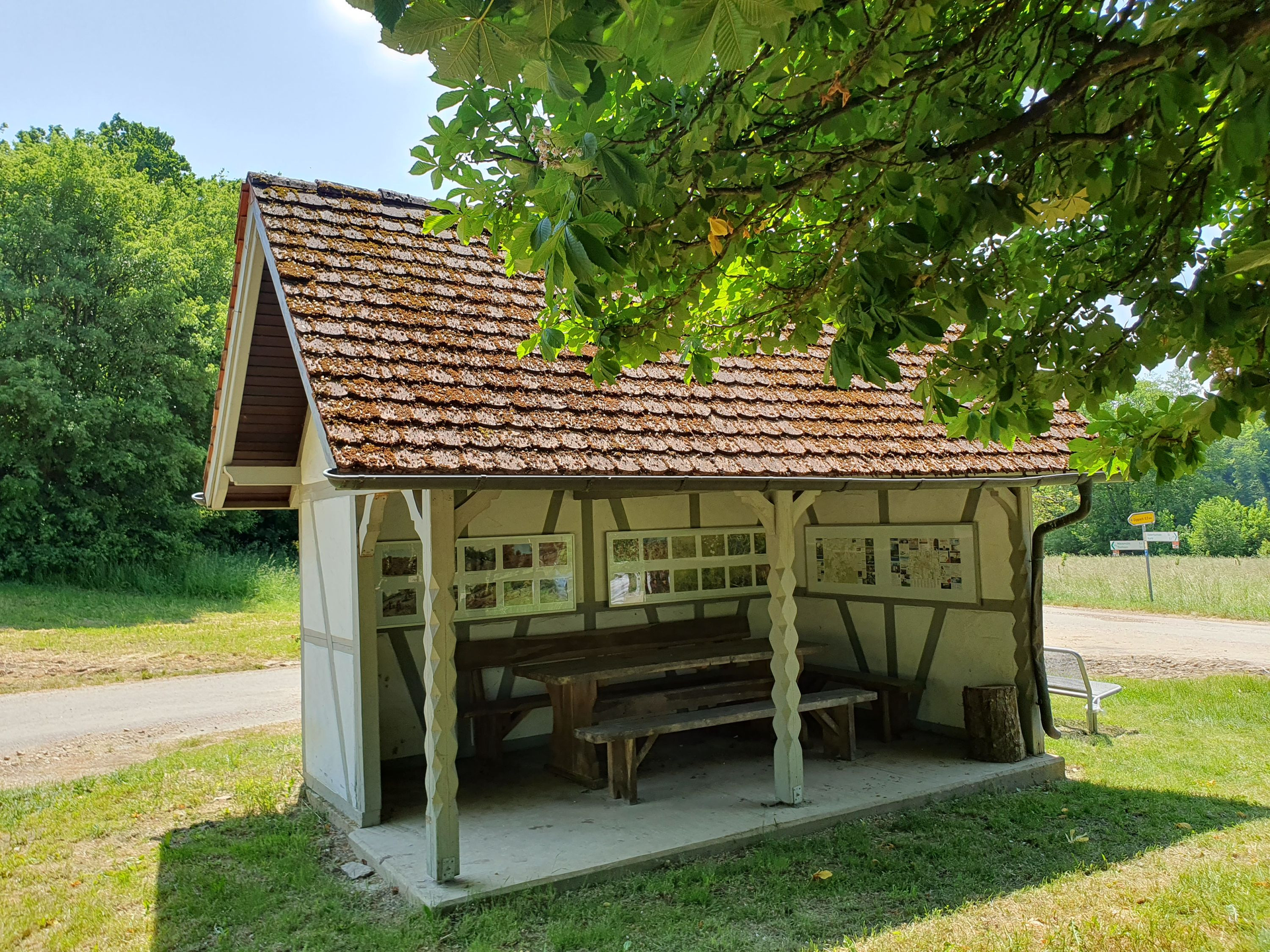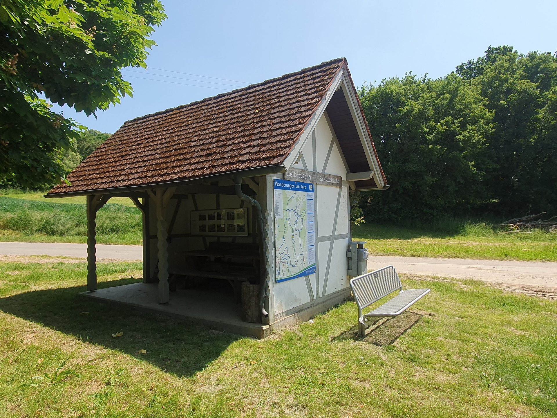 Ungefähr auf halber Strecke bietet die Dippacher Schutzhütte mit Tisch und Bänken einen beschaulichen Rastplatz und einen trockenen Unterstand bei spontanen Regengüssen.