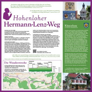 Der unterhaltsame Wanderweg ( 17 km ) führt von Künzelsau über Schloß Stetten nach Langenburg oder in die umgekehrte Richtung. Ein schöner Strauß Erinnerungen aus der Feder von Hermann Lenz begleitet die Wanderer auf der Strecke.
