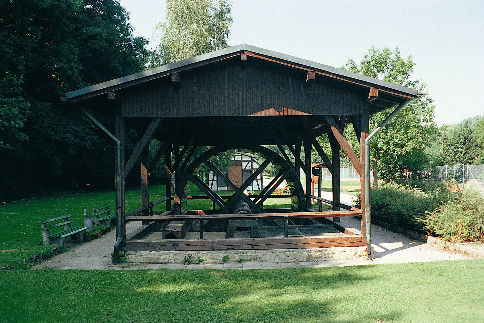In der Talmulde am Rande des Einsiedelwaldes, befindet sich die Bad Rappenauer Soleförderanlage mit historischem Tretrad, fahrbarem Bohrturm und fünf langgestreckten Pumpenhäuschen.