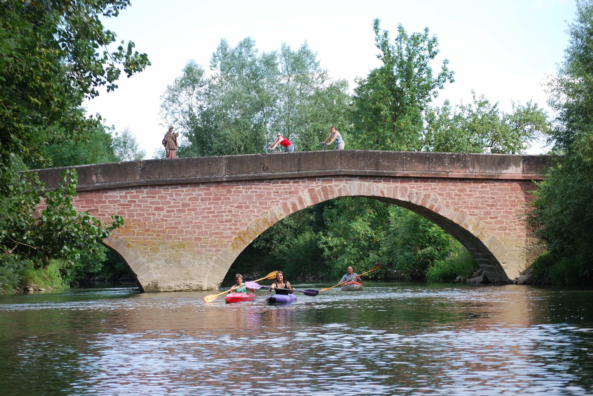 - Auf der schmalen Tauberbrücke zwischen Hochhausen und Werbach befindet sich eine sehenswerte Statue des Brückenheiligen Nepomuk.