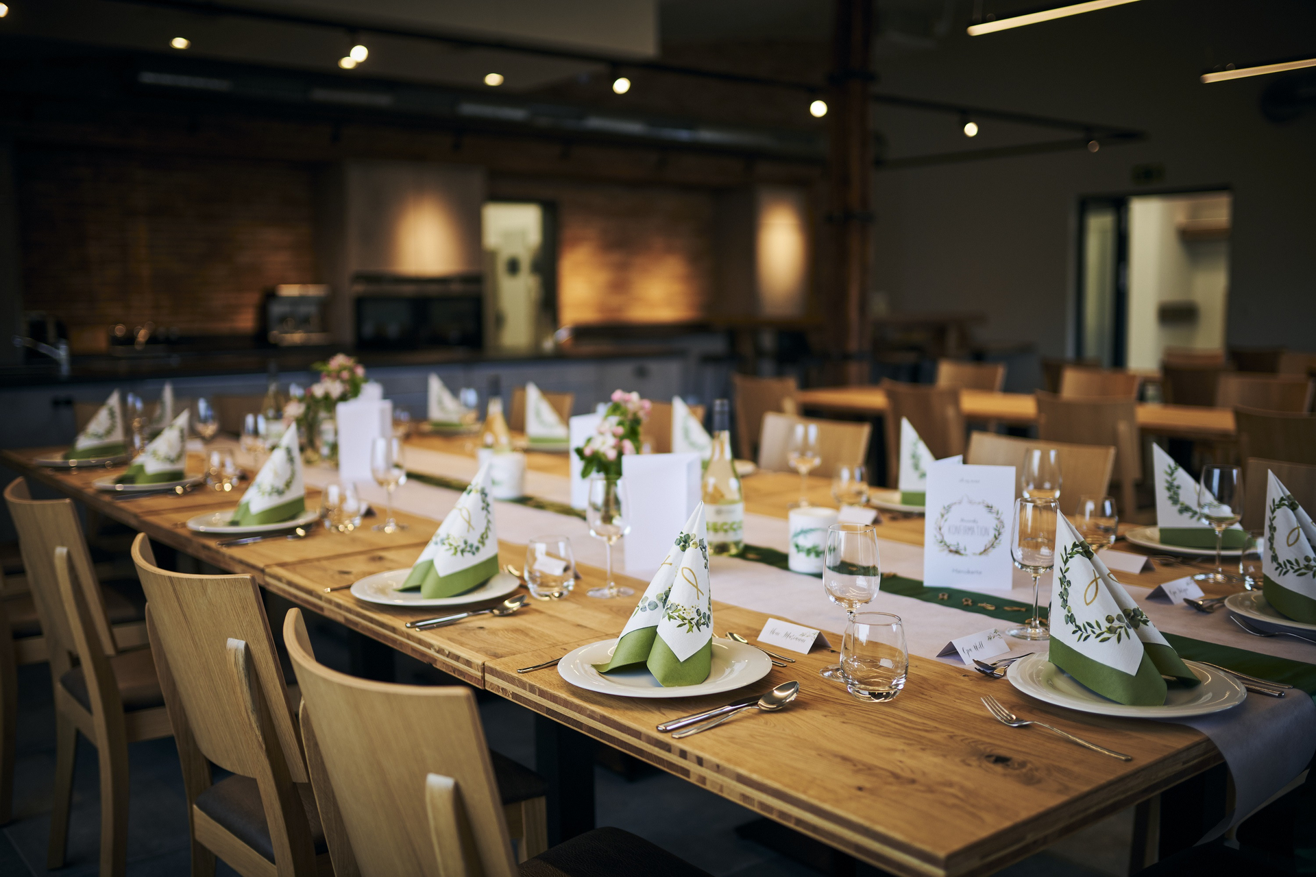 Auf dem Gelände des Hofladens und Hofcafés steht für private Feiern, Veranstaltungen und Tagungen ein Eventraum zur Verfügung. Dieser bietet Platz für bis zu 65 Personen und ist dank Aufzug barrierefrei erreichbar. Ein Highlight ist die große Eventküche, die für Showcooking und Kochkurse geeignet ist. Der direkte Zugang zur Dachterrasse bietet schöne Ausblicke und lädt zum Verweilen ein. Für die kleinen Gäste gibt es neben einer gemütlichen Wickel- und Stillmöglichkeit auch einen ansprechenden Kinderspieltisch, der mit Malsachen und Spielen bestückt ist.