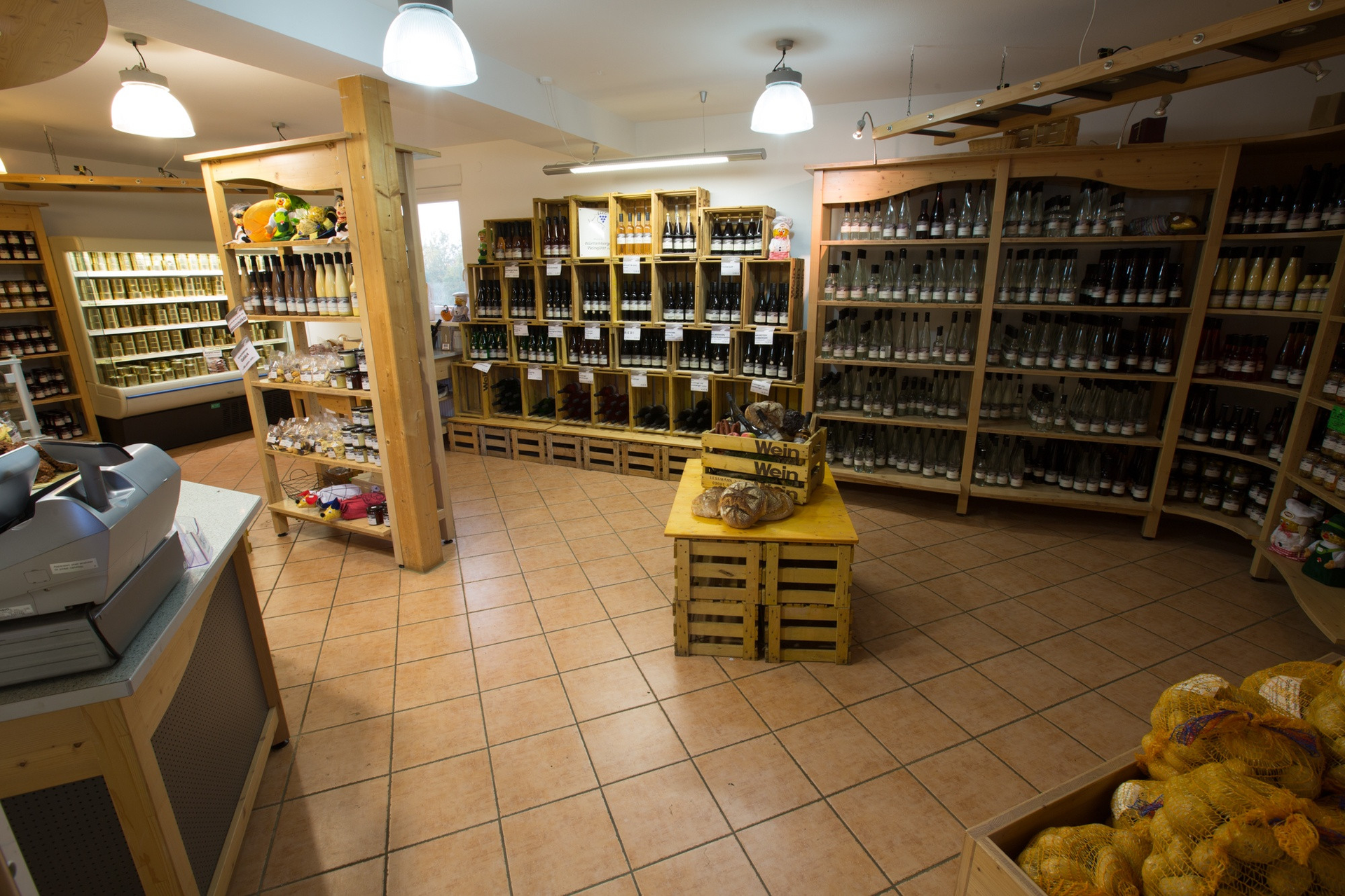 Hofladen mit selbstgemachten Weinen, Likören, Backwaren und mehr.