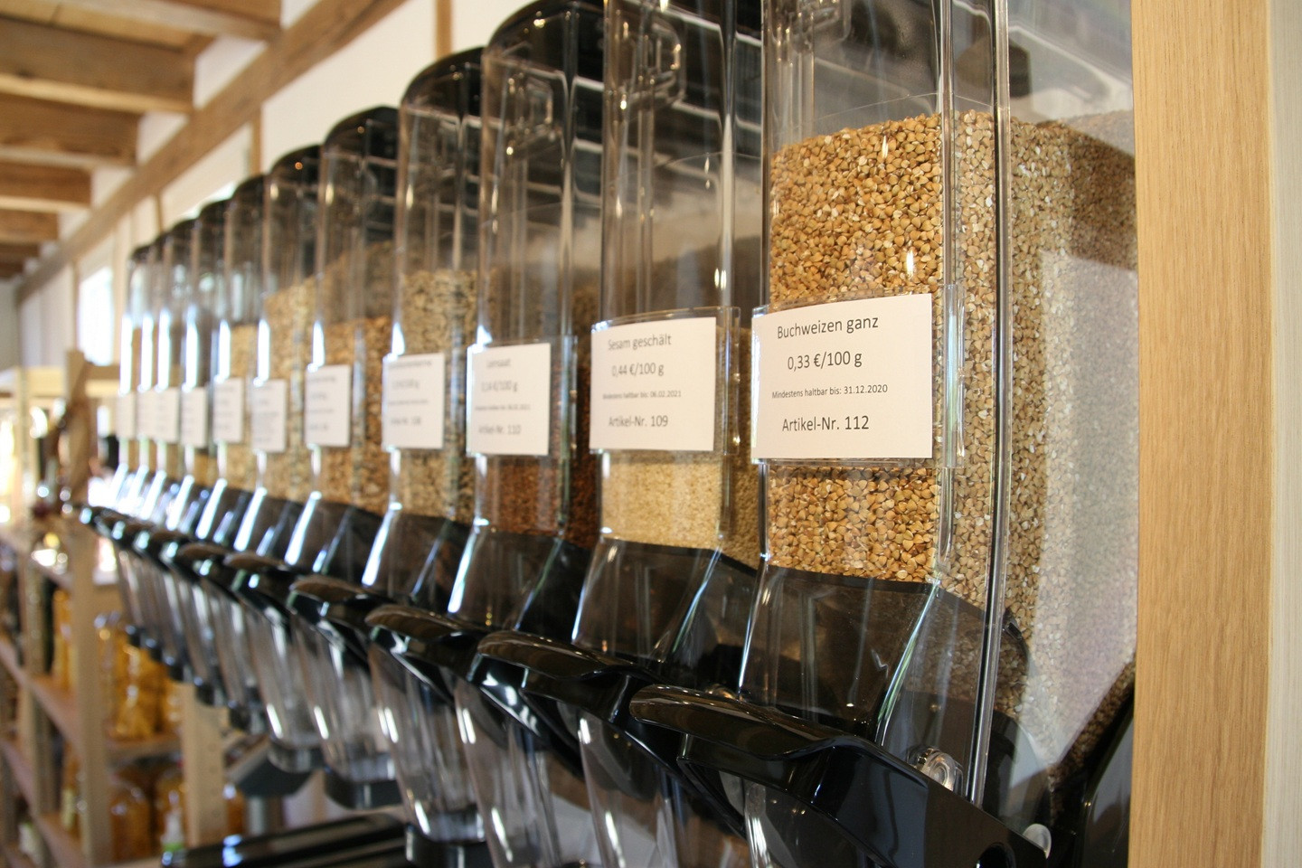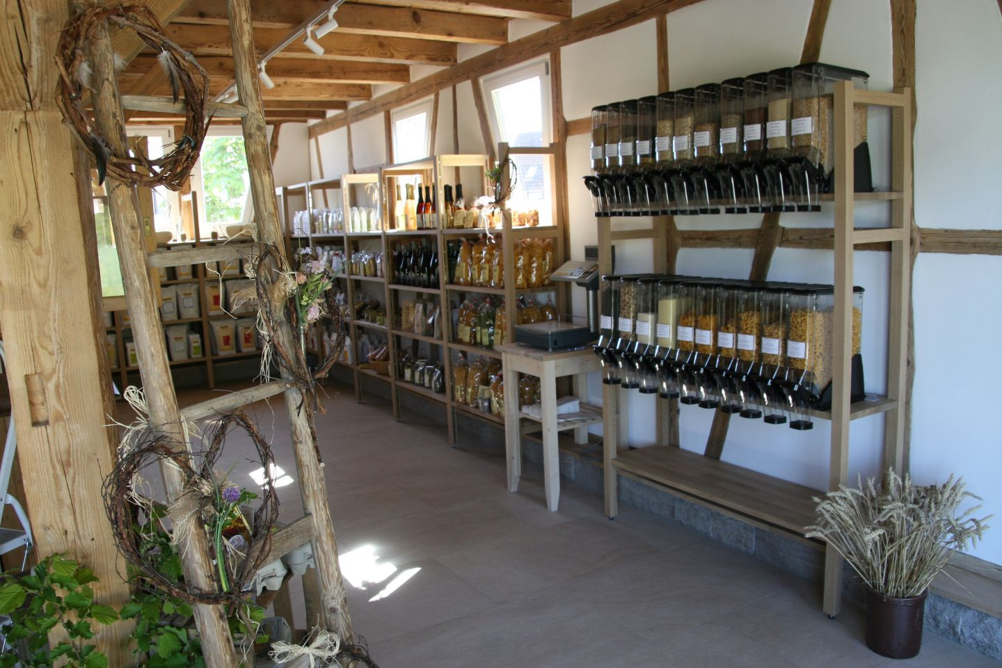 Wurst im Glas, die aus dem Fleisch unserer eigenen Schweine hergestellt wird. Daneben erhalten Sie bei uns das gesamte Mehlsortiment der Jesser-Mühle inkl. Beratung, Backzutaten, Müsli, Nudeln, Honig, Wein, Likör, Whisky, Schnaps, Honig, Eier, Kartoffeln,... Highlight: Nudel, Flocken, Müsli oder Linsen kann man unverpackt einkaufen! Wir stellen auch Geschenksäckchen zusammen.