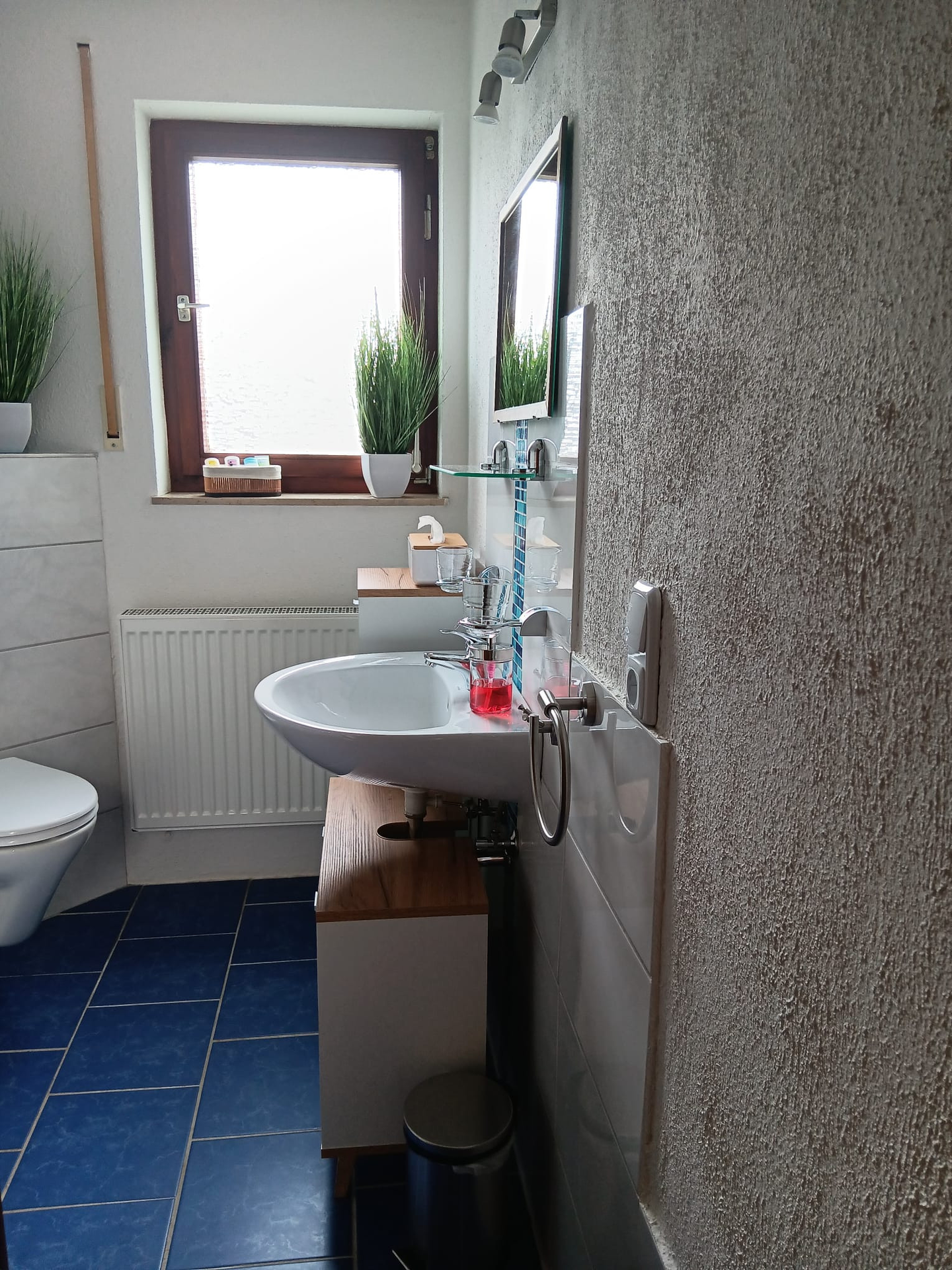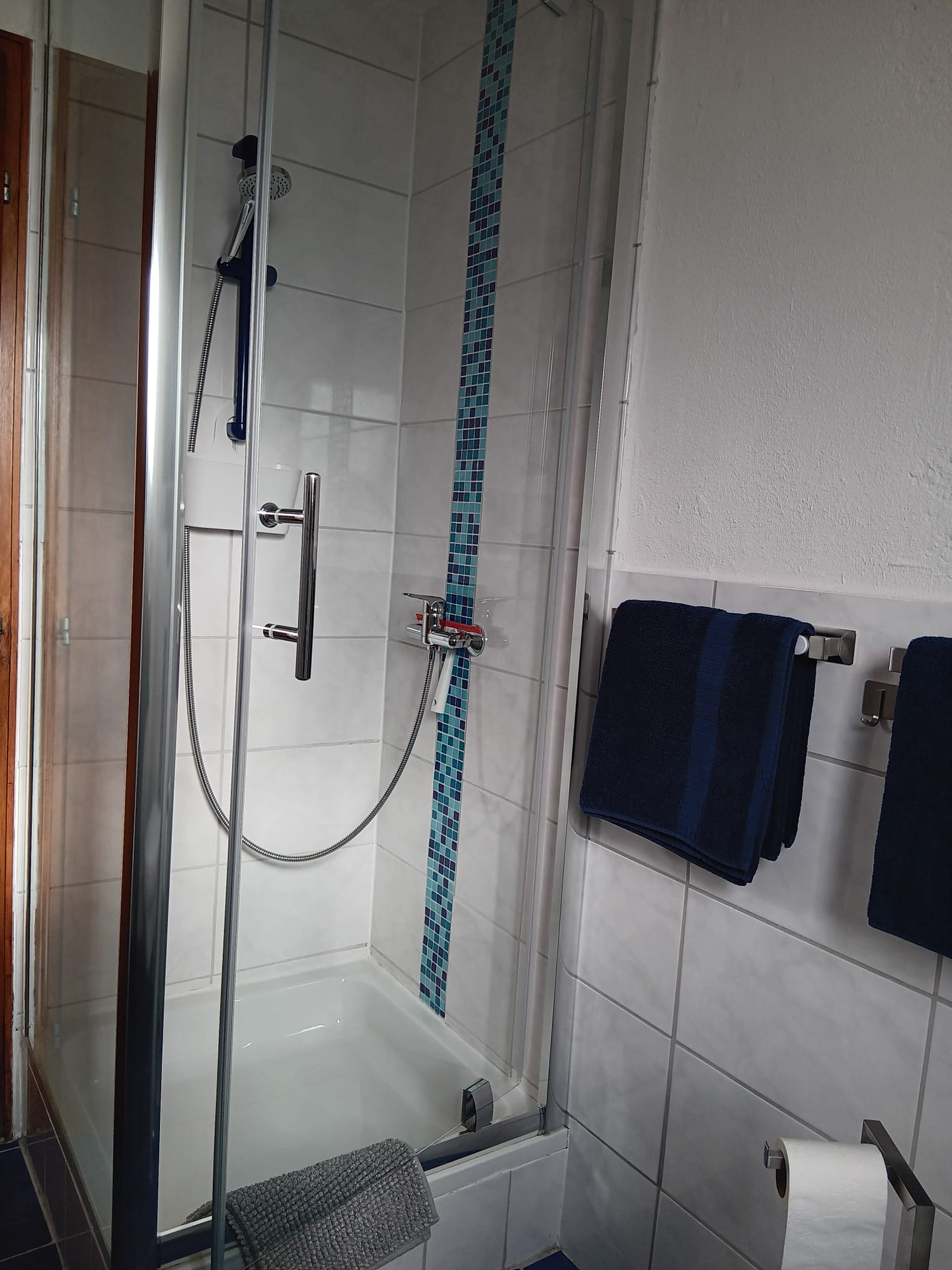 Im Badezimmer mit Dusche und WC finden Sie einen Fön und Handtücher/Duschtücher.