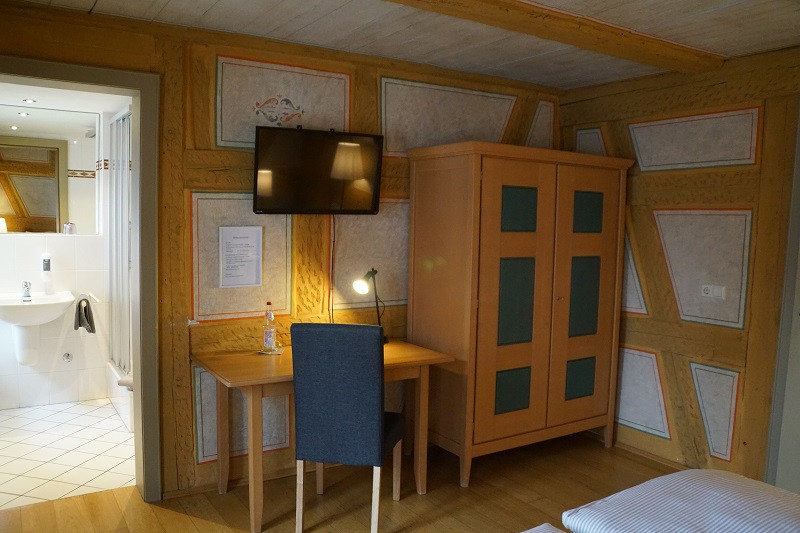 In allen Zimmern sowie der Suite sind historische Details, wie das Fachwerk erkennbar. Für hohen Komfort sorgen Parkettboden und Allergiker-Bettwäsche. Das Hotel verfügt über 1 Einzelzimmer, 9 Doppelzimmer und 1 Romantik-Suite.