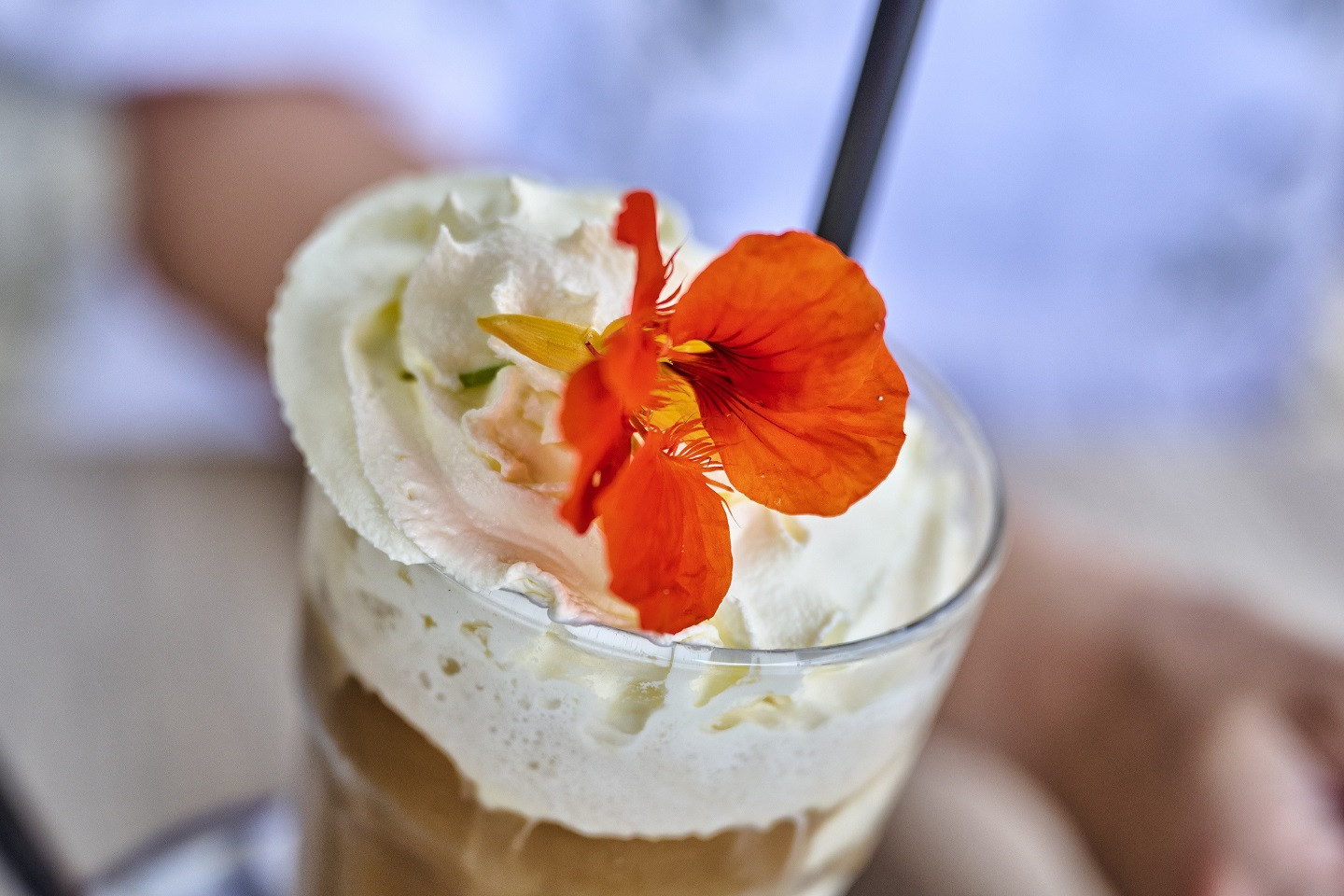 Dein Frühstück nimmst du direkt im schmucken Café im Untergeschoss des Hauses ein.