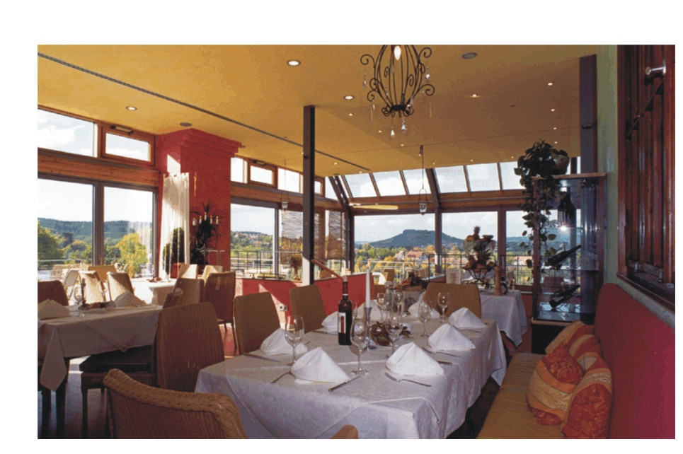 Das Restaurant mit Wintergarten, herrlicher Sonnenterrasse und idyllischem Panoramablick über das Weinsberger Tal ist perfekt zum Verweilen und Genießen. Der Küchenchef lädt auf eine kulinarische Entdeckungsreise durch die Welt der schwäbischen Küche ein. Saisonal passende Köstlichkeiten und regionale Küche verwöhnen den Gaumen – auf der Speisekarte des Rappenhofs findet sich deftig Herzhaftes und edel Raffiniertes.