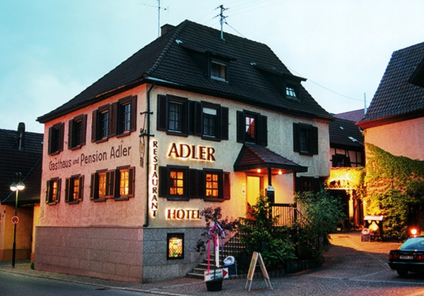 Das Gasthaus Adler ist eine der ältesten Gaststätten im Kraichgau, urkundlich nachgewiesen seit ca. 1400. Bis ins letzte Jahrhundert wurde auch Bier gebraut. Tradition verpflichtet, deshalb wurde das Restaurant auch nach größeren Renovierungsarbeiten in seinem ursprünglichen Stil erhalten.