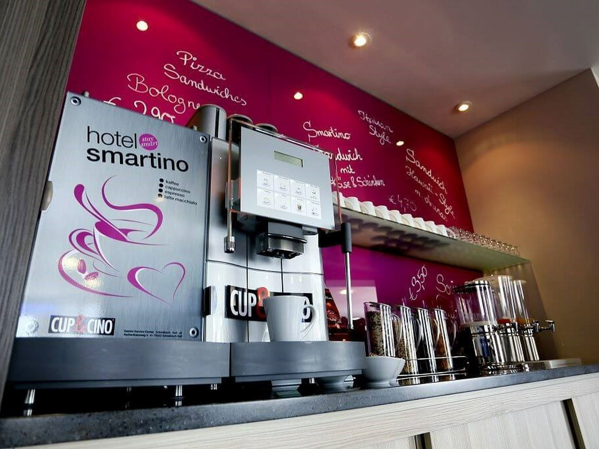 Snacks, Süßigkeiten sowie kalte und warme Getränke findest du im smart-Shop an der Rezeption.