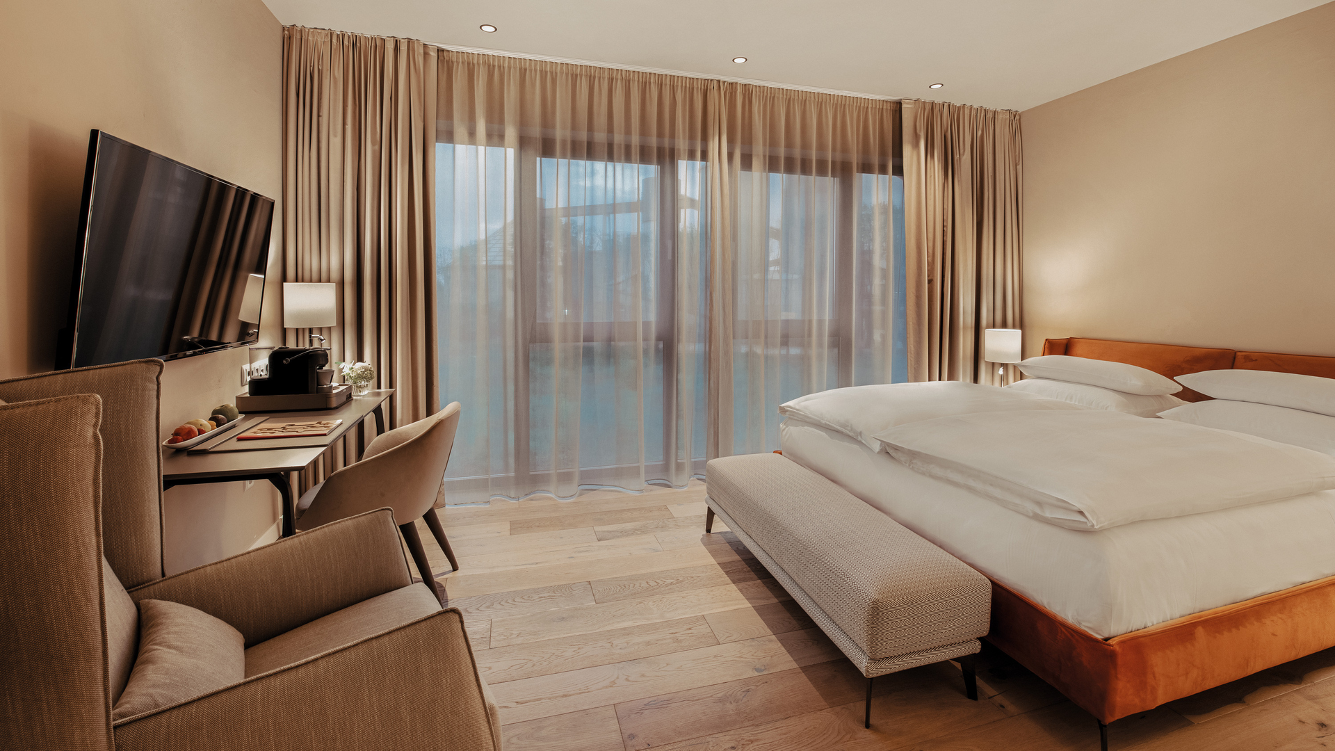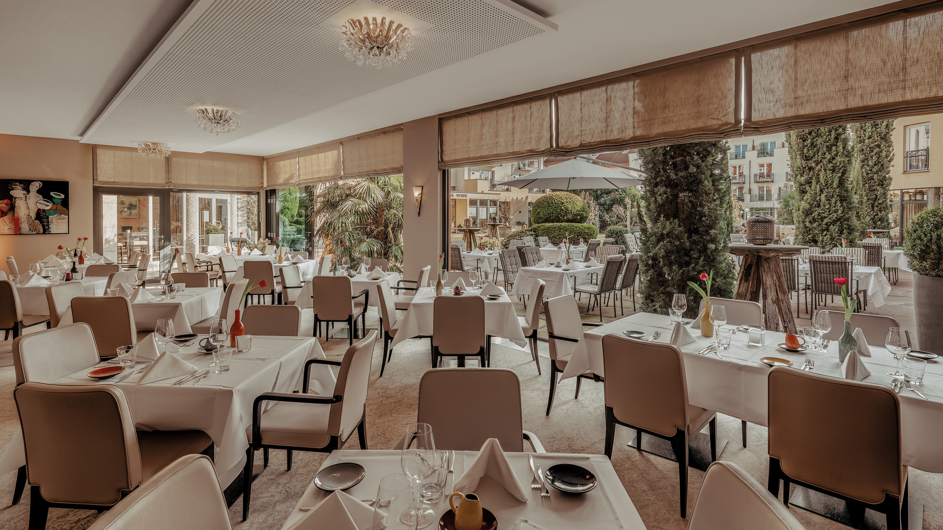 Kulinarisch verwöhnt werden unsere Gäste in zwei Restaurants, der Hotelbar, im Wintergarten und der großzügigen Gartenterrasse.