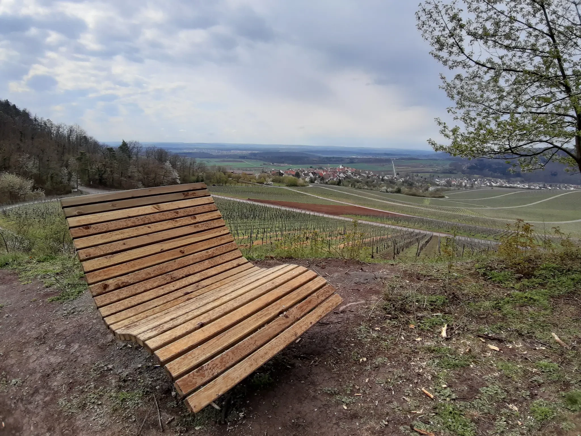 Nimm Platz auf dem hölzernen Hügelsofa, dreh Dich in Deine Lieblingsblickrichtung und lass den Blick über Hohenhaslach und die sanften Hügel der Umgebung schweifen. Die Sofas sind um 360 Grad drehbar und kippbar – für maximalen Ausblick und Entspannung.