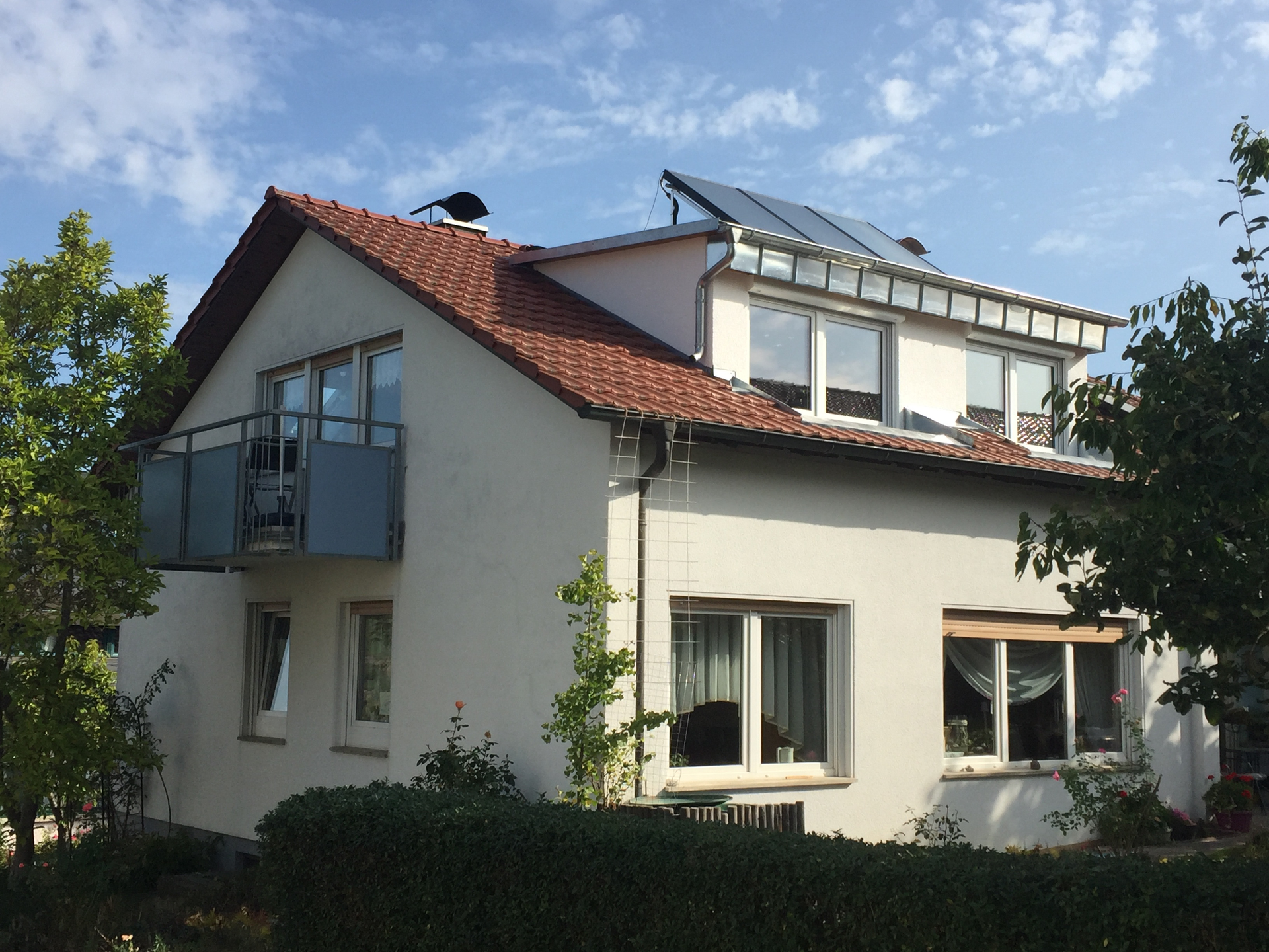 Helle, sonnige Wohnung im Dachgeschoss (ca. 65 qm) mit Panoramablick ins Tal und auf die Weinberge, im Weinort Markelsheim im lieblichen Taubertal für 2 - 3 Personen. (Zustellbett möglich)