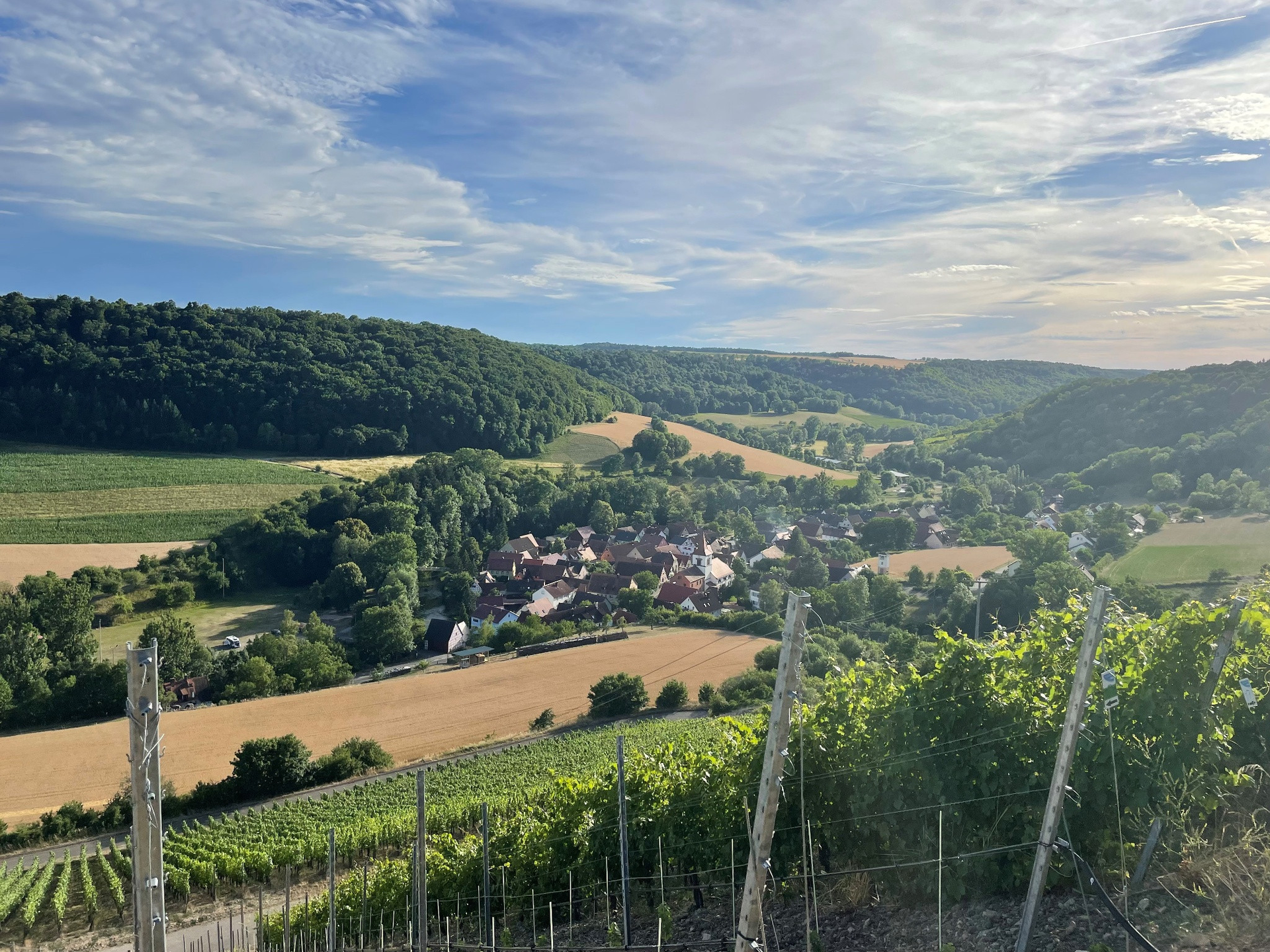 Nach einem Aufstieg von ca. 170 m warten wunderschöne Fernblicke über das Taubertal und Weikersheim auf dich. Durch Buchen- und Mischwald geht es stetig das Vorbachtal hinauf zur Bergkirche nach Laudenbach. An Weinbergen vorbei erreichst du nach romantischen Ausblicken Niederstetten.
