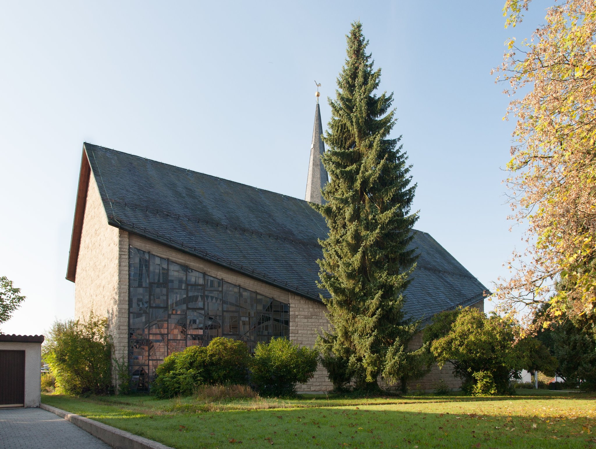 Die Kirche mit freistehendem Glockenturm wurde 1962 erbaut.