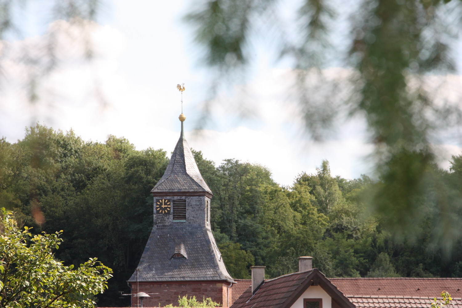 Im 30-jährigen Krieg wurde das Langhaus der Kirche zerstört, lediglich der Turm und die Choranlage blieben erhalten. Der Turm der Kirche ist der Überrest der ehemaligen Tiefburg der Herren von Remchingen. Von historischer Bedeutung ist, dass er einer der wenigen erhaltenen befestigten Kirchtürme in unserem Raum ist. In den drei oberen Stockwerken des Turmes befinden sich Schießscharten, sog. Schlüsselscharten, außen nur 8 cm, innen 85 cm breit. Mit einem bis zu 1,70 m starken Mauerwerk kommen die baulichen Dimensionen des ehem. Bergfriedes deutlich zum Ausdruck. Der Turm wurde bei einem Brand am Josefstag 1832 beschädigt und dann mehrere Meter abgetragen. Eine Renovierung erfolgte in den Jahren 1912/13. Der Turm bildet heute das Bild eines dreifach übereinander gesetzten Daches, wobei der obere Teil an die Form eines Zeltdaches erinnert. Wiederaufgebaut wurde das Langhaus erst im Jahre 1780, rund 150 Jahre später. In den Jahren 1890/92 wurde das Langhaus nach Westen erweitert. Dies ist heute noch gut zu erkennen. Im Jahre 1969-70 wurden die Innenräume der Kirche einer vollständigen Renovierung unterzogen. Hierbei wurde der Kirchenraum und der Chor weitgehend „ausgeräumt". Die vorhandenen Bilder und Heiligenfiguren wurden dabei fast alle entfernt. Leider auch der im Chorraum befindliche Hochaltar. Nach dieser Renovation vermittelt der gesamte Kirchen- und Chorraum einen etwas nüchternen Eindruck. Allerdings ist der Chor nach der „Ausräumung" wieder in seiner ursprünglichen spätgotischen Gestaltung ein sehenswertes Kleinod. Das im Kirchenschiff verbliebene und vollständig erhaltene Grabmal für Maria Salome von Remchingen aus dem Jahre 1555 ist künstlerisch und historisch besonders beachtenswert. Maria Salomevon Remchingen war die Ehefrau des Hans Jacob von Remchingen und stammte aus dem Geschlecht der Hofwart von Kirchheim, das im nahe gelegenen Kraichtal- Münzesheim einige Jahrhunderte (bis 1675) ansässig war.
