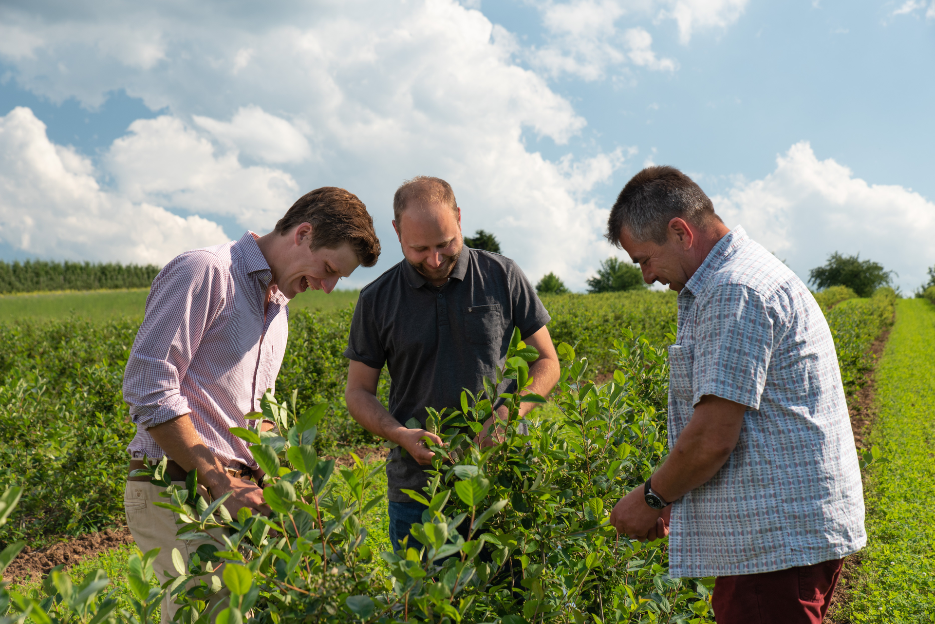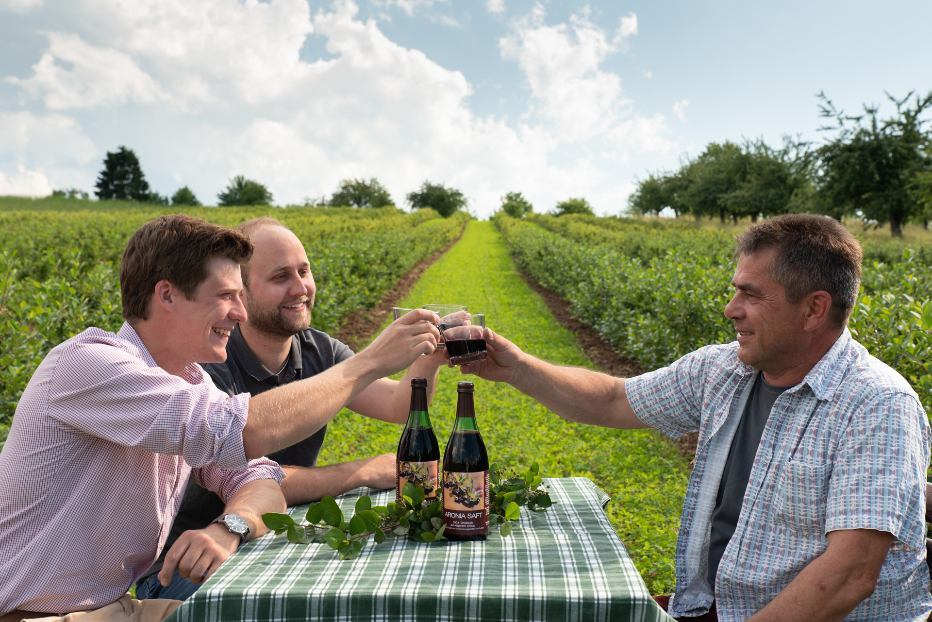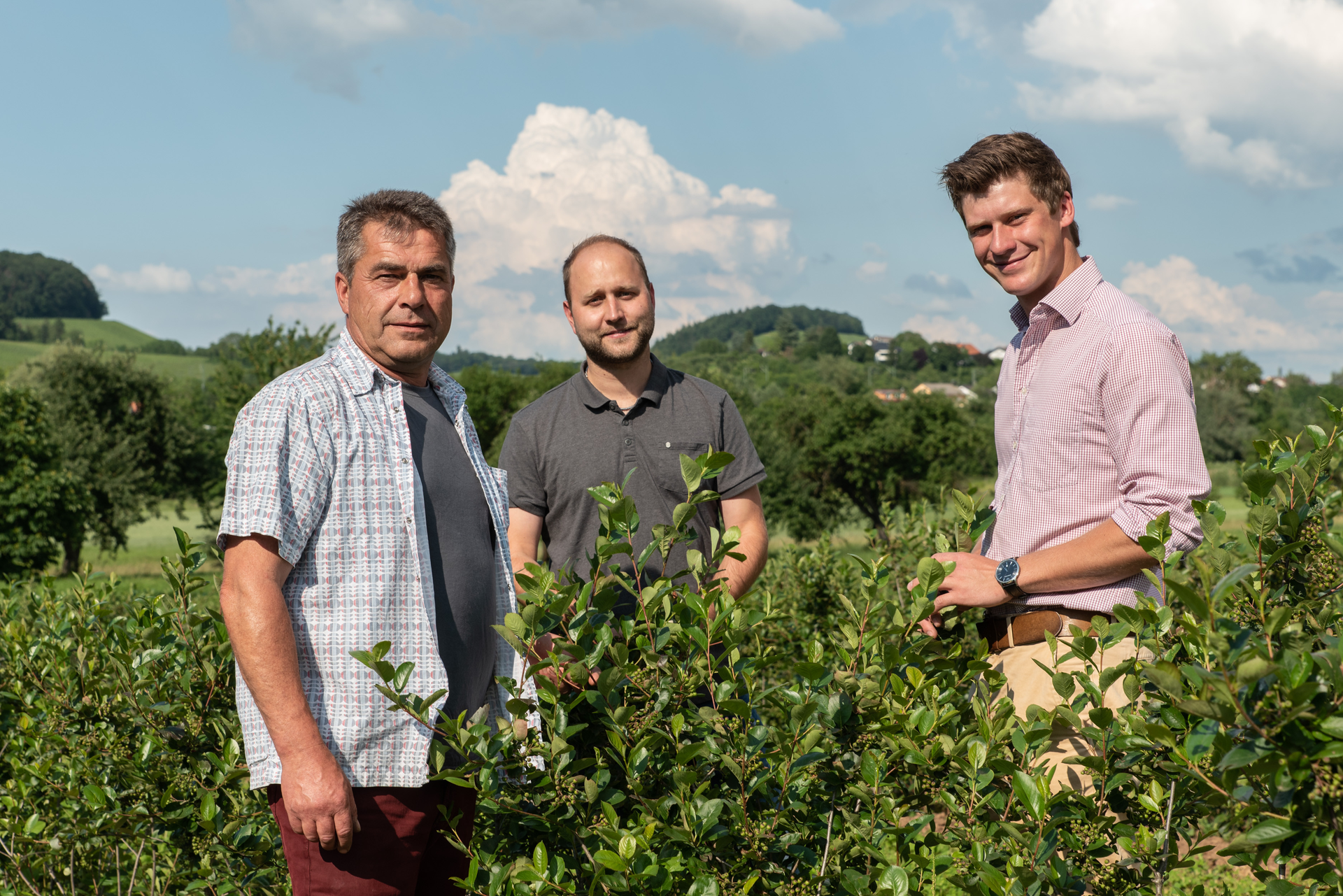 Drei Männer und die Idee, etwas Neues auszuprobieren - so wurden im im Herbst 2017 die ersten Aroniasträucher gepflanz. Seither bewirtschaften und pflegen Nico Knapp, Ulrich Dierolf und Wilhelm Kuntz ihre Anbauflächen mit großer Sorgfalt und nach biologischen Richtlinien.