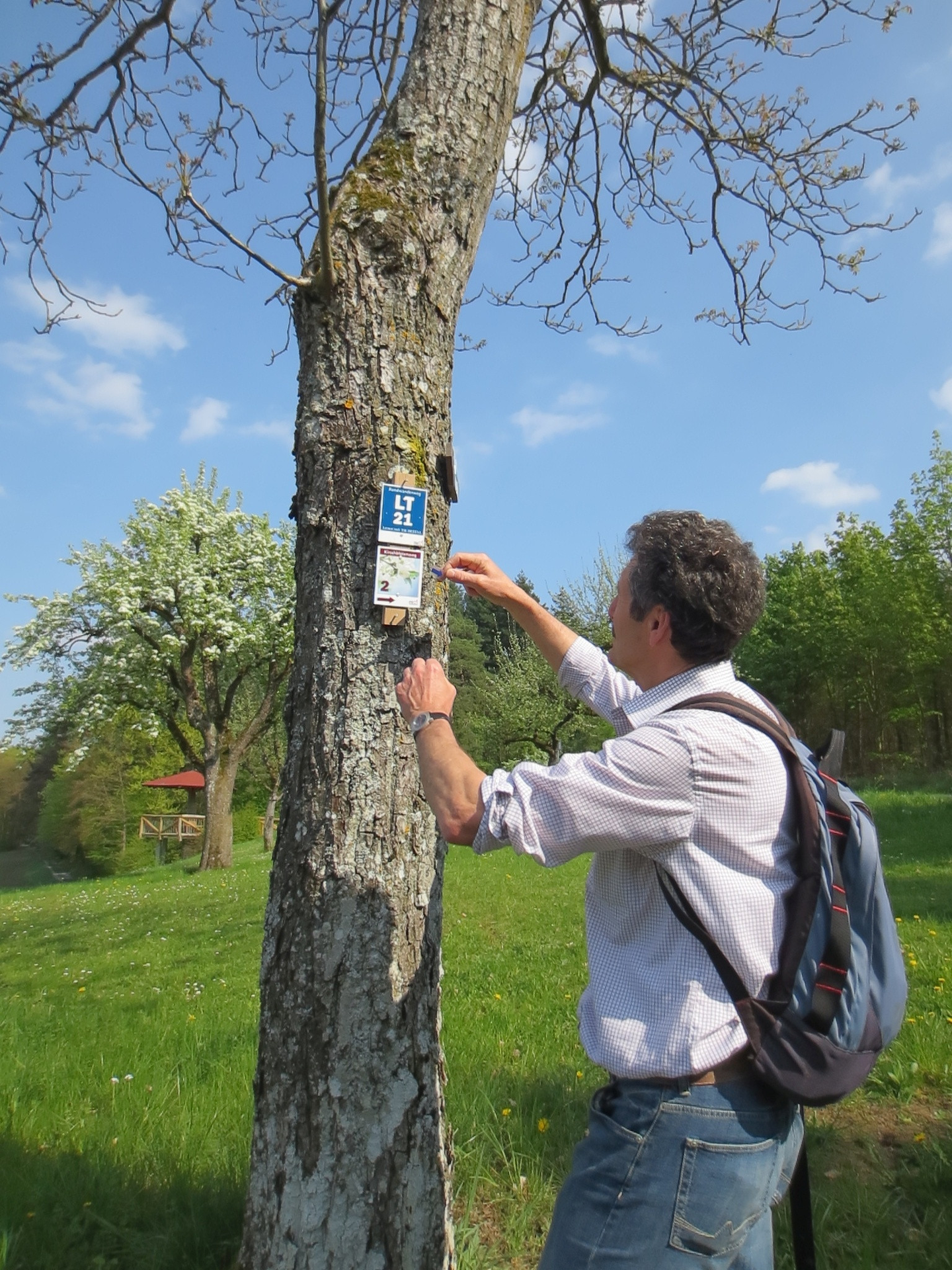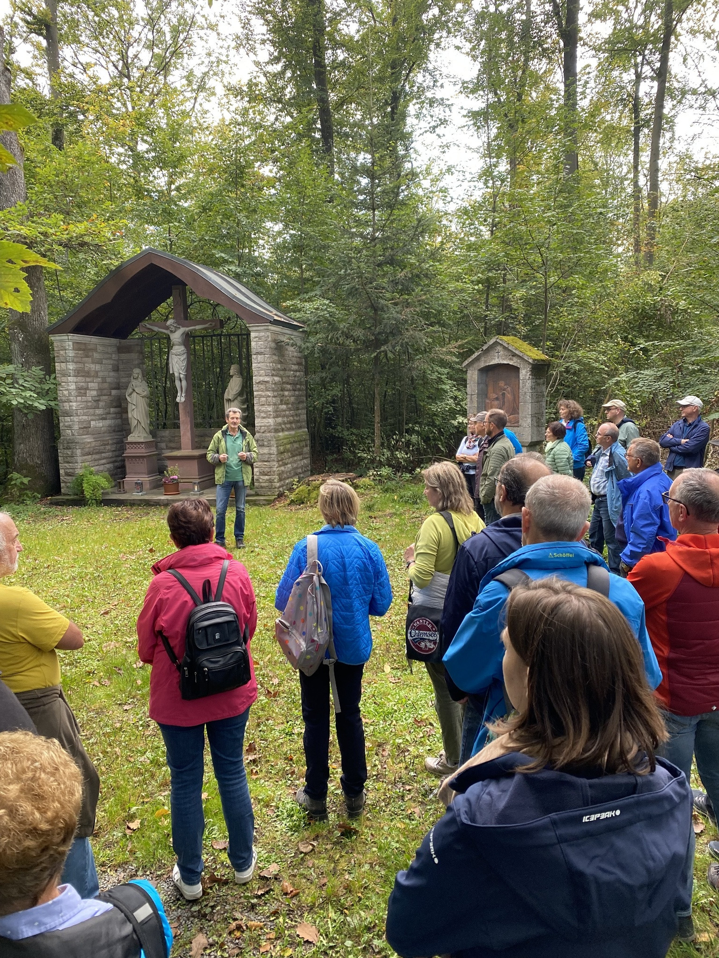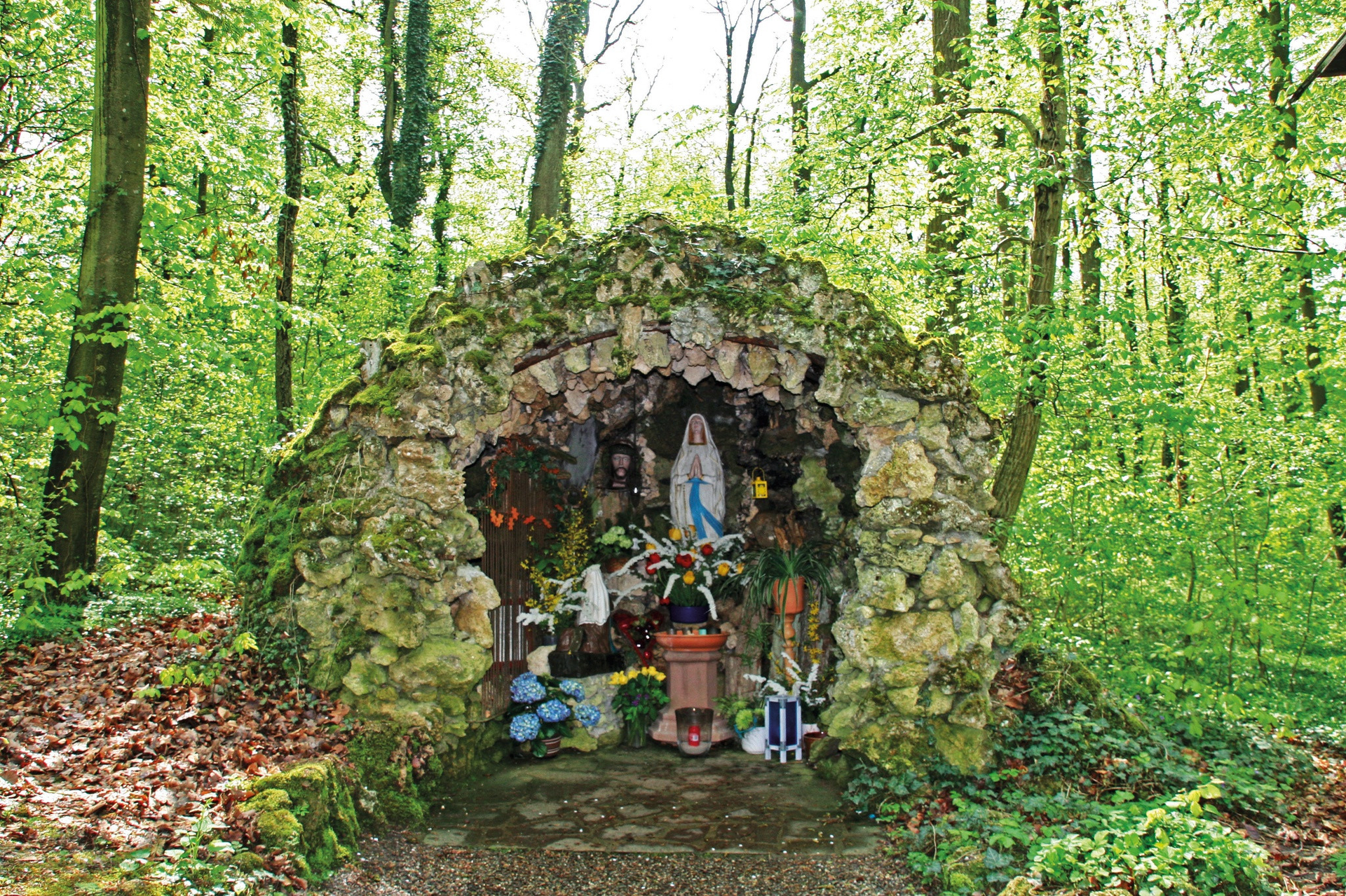 Vom Rathaus geht es in den Wald über den Kreuzweg zum Steffeskirchle und weiter zur Mariengrotte. Entlang des gesamten Weges befinden sich zahlreiche Streuobstgrundstücke. Ob gepflegt oder teils wild im Wald gewachsen, runden zahlreiche Kirschbäume, die zur Namensgebung des „Kirschlütenweges“ inspirierten, das Gesamtbild ab.
