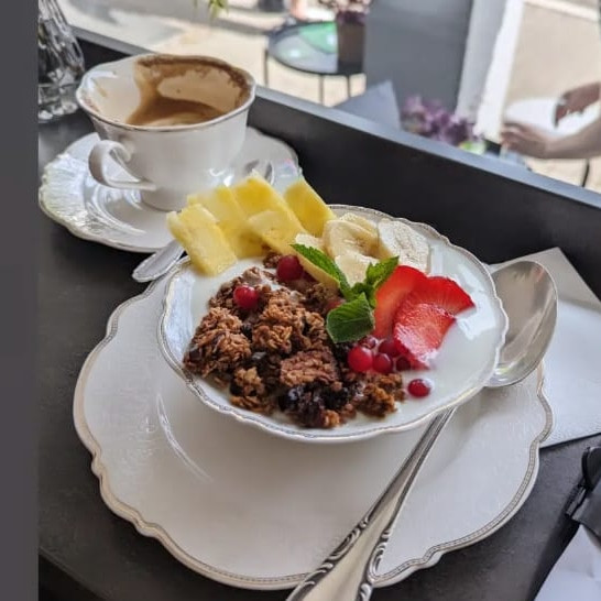 Wir bieten glutenfreies, veganes, vegetarisches und Vollkost Frühstück, Mittagessen und selbstgemachten Kuchen an. Unsere Produkte sind hauptsächlich von Bauern aus der Region. Exotische Früchte kommen nur aus Europa. Somit wechselt unsere Karte saisonal und ist abhängig von der Ernte. Wir bereiten unsere Süßspeisen nur mit natürlichem Zucker zu. Außerdem bekommt ihr bei uns Picknickkörbe.