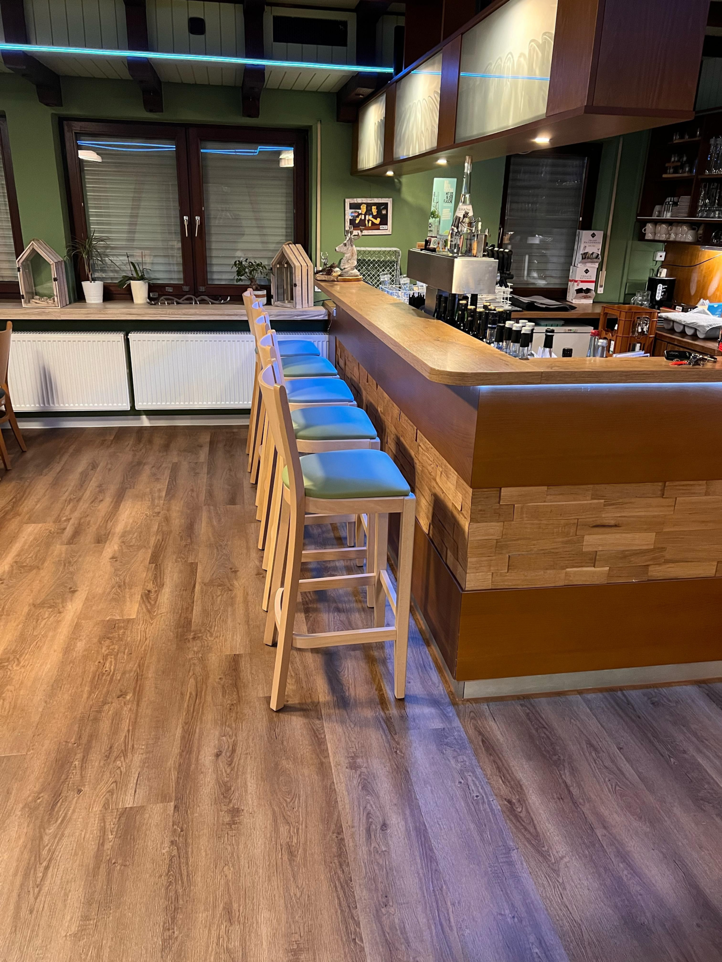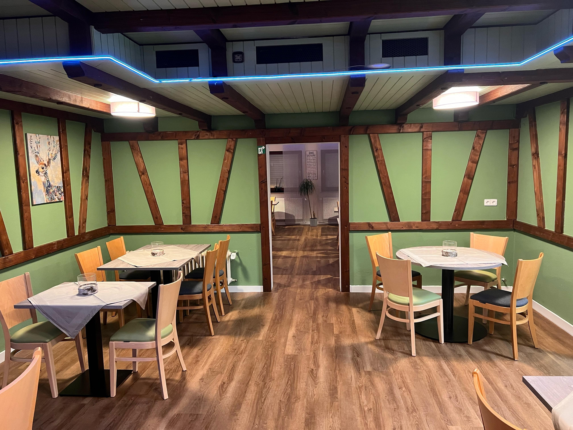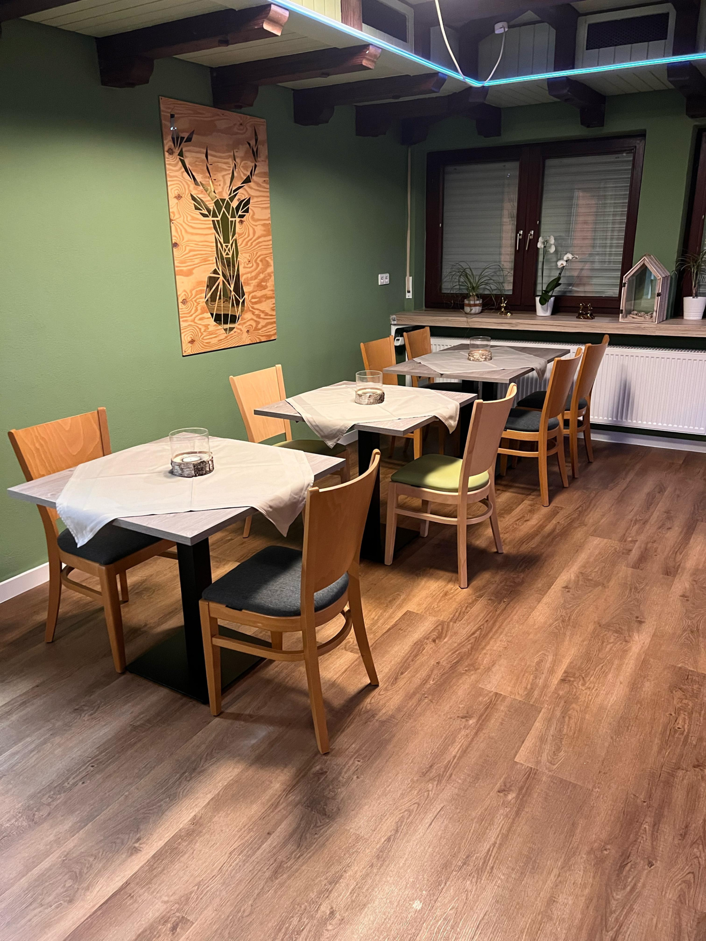 Liebhaber der deutschen Küche kommen voll auf ihre Kosten. Hausgemachte Maultaschen mit Kartoffelsalat, knackige Salate, Zwiebelrostbraten oder Kässpätzle werden von den Köchen mit Liebe zubereitet. Wenn die Abende frischer werden, sind die beheizte Terrasse oder die Gasträume als Rückszugsort genau richtig.
