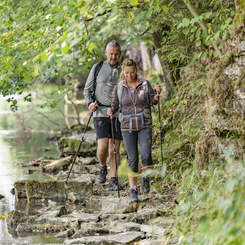 Wichtiger Hinweis: Hier kannst du bei hohem Wasserstand, Nässe und Glätte auf einer Ausweichroute über Beimbach abseits des Flusses gehen (etwa 0,7 km kürzer).
