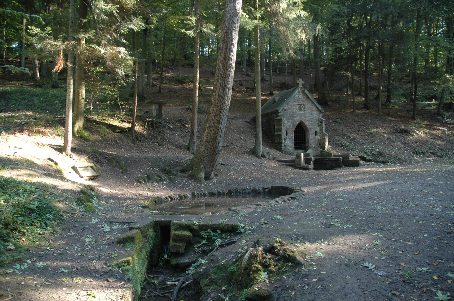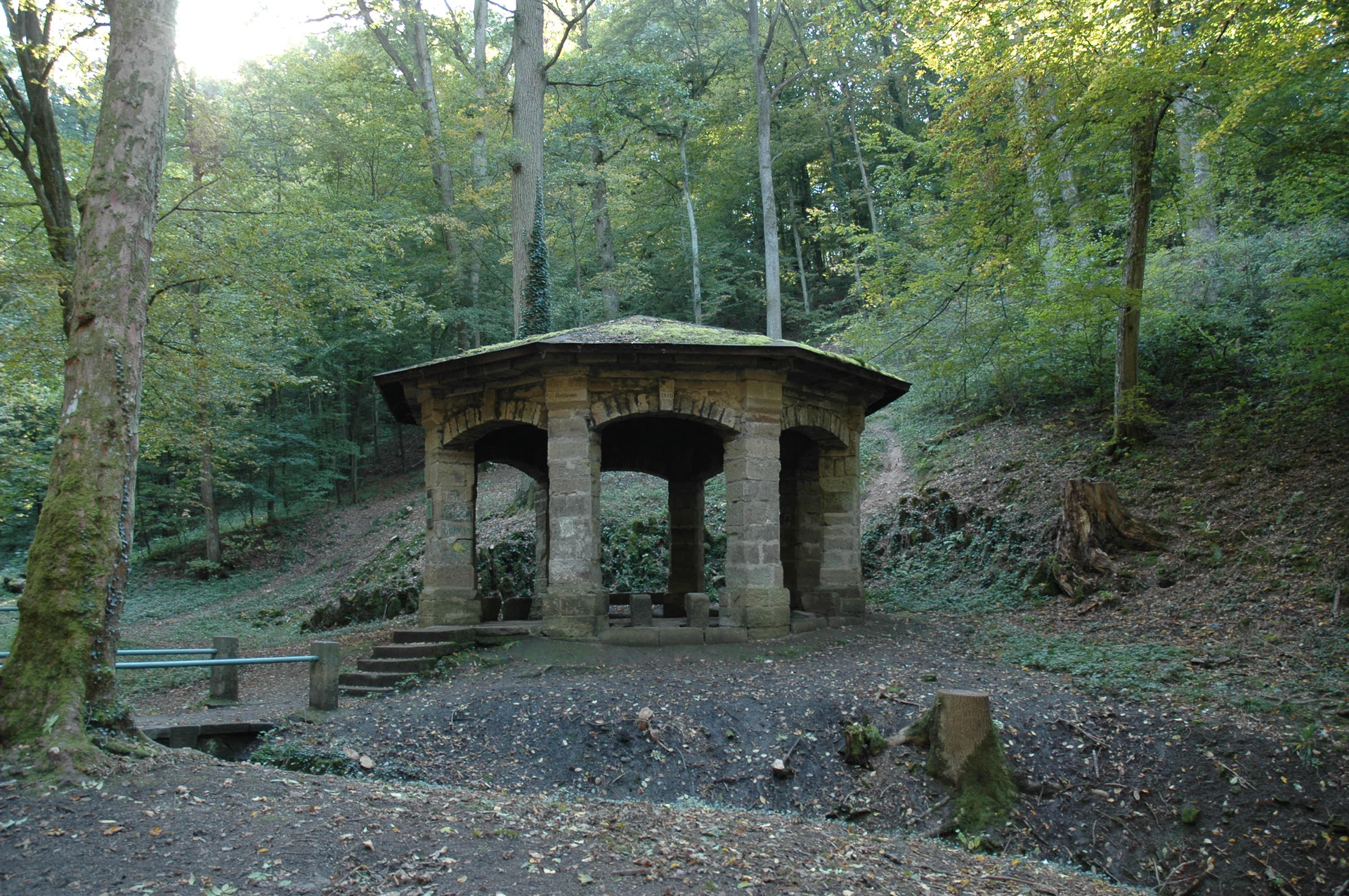 Auf einer kleinen Lichtung liegt die Köpferbrunnenanlage. Das Quellbecken ist an heißen Sommertagen bei Wanderern willkommen für ein kühles Fußbad.