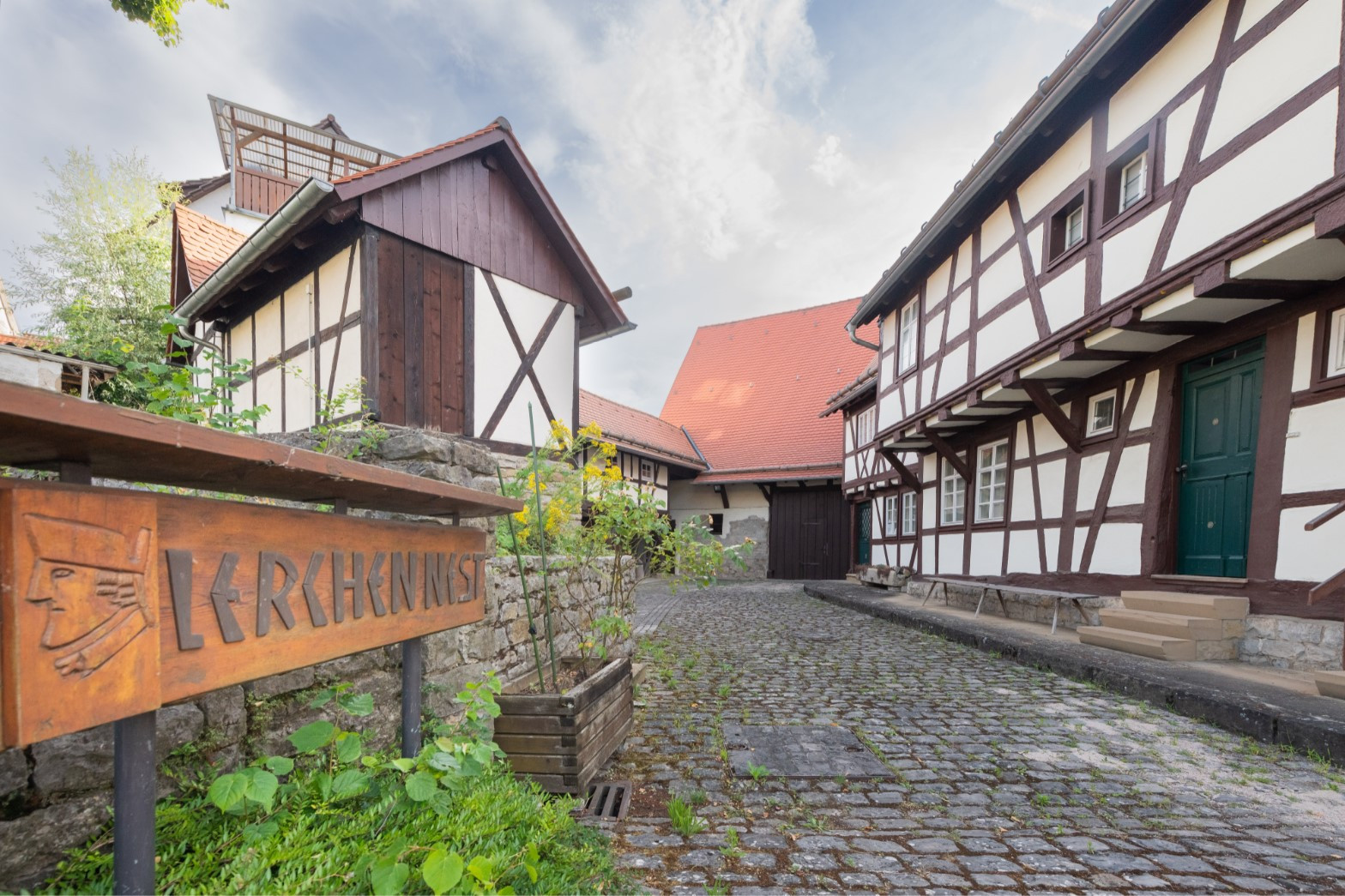 Am Ende der Straße links bergab und die Nächste links in die „Keltergasse”.
