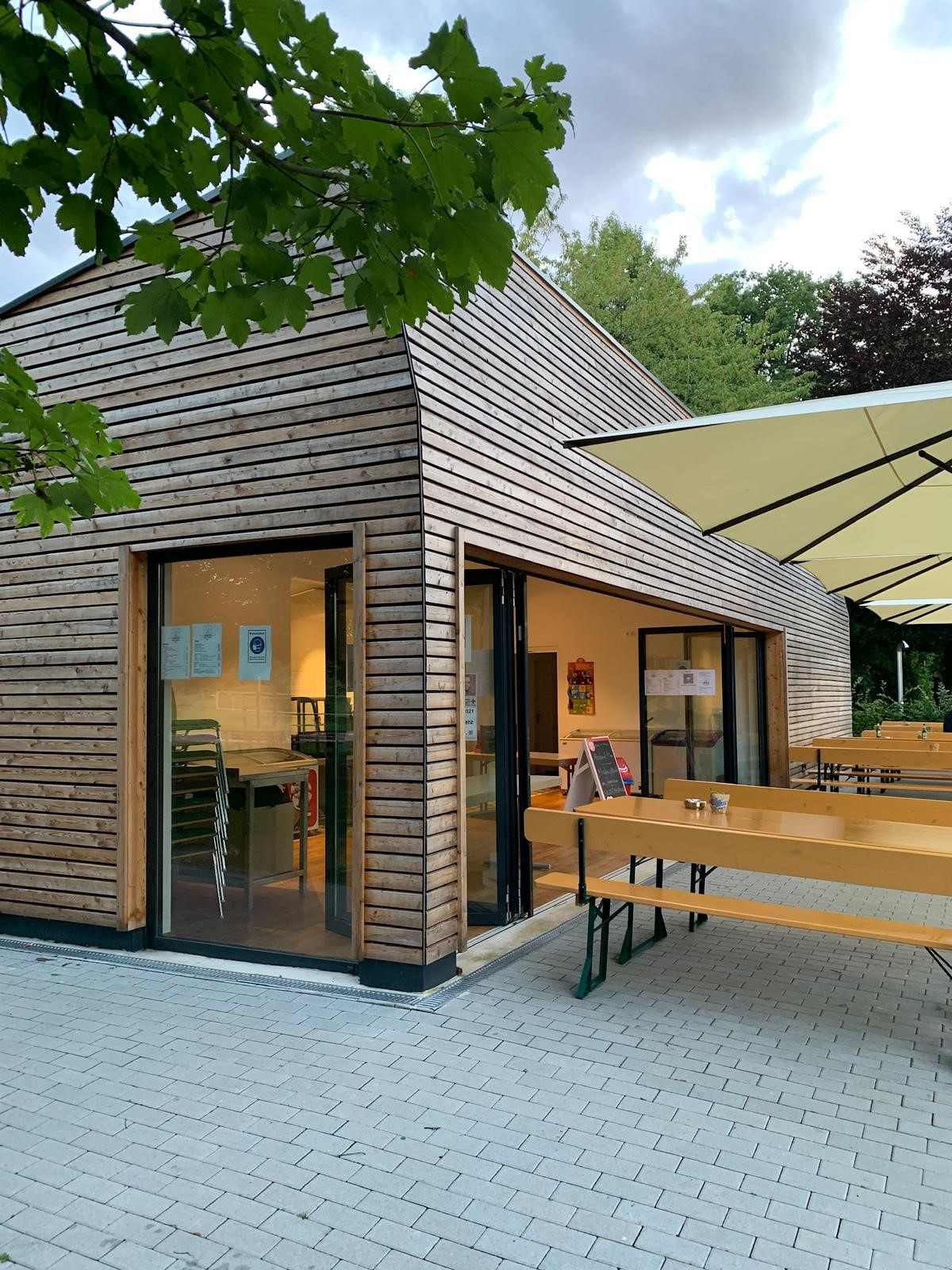 Der Seekiosk Lago 15 liegt zwischen Badeufer und Kinderspielplatz und bietet kleine Speisen und Getränke an: Flammkuchen, Pizza, Wurstsalat und Grillgerichte.